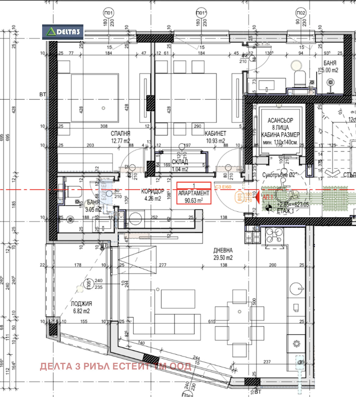 Обща площ: 103,28 кв.м.