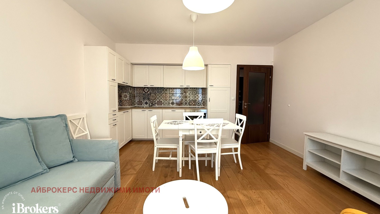 Апартаментът е функционално разпределен и напълно обзаведен. Още при входа е обособено отделно помещение, подходящо за гардеробна или допълнително съхранение на вещи. Дневната е светла и комфортна, обзаведена с удобно канапе за почивка и четене, както и разтегателен диван с функция сън и ракла за багаж. В помещението е инсталиран климатик за комфорт през всички сезони.