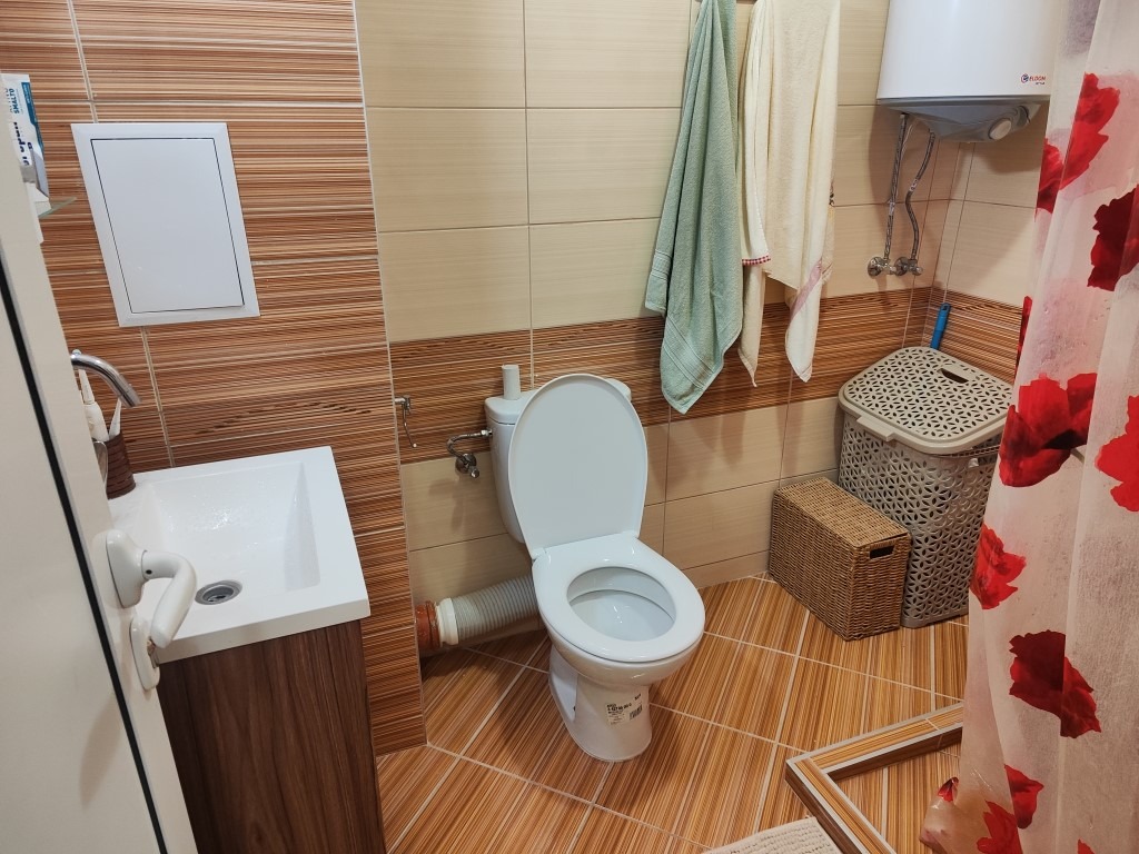 📷 Банята е просторна, с качествена керамика, душ зона и бойлер.