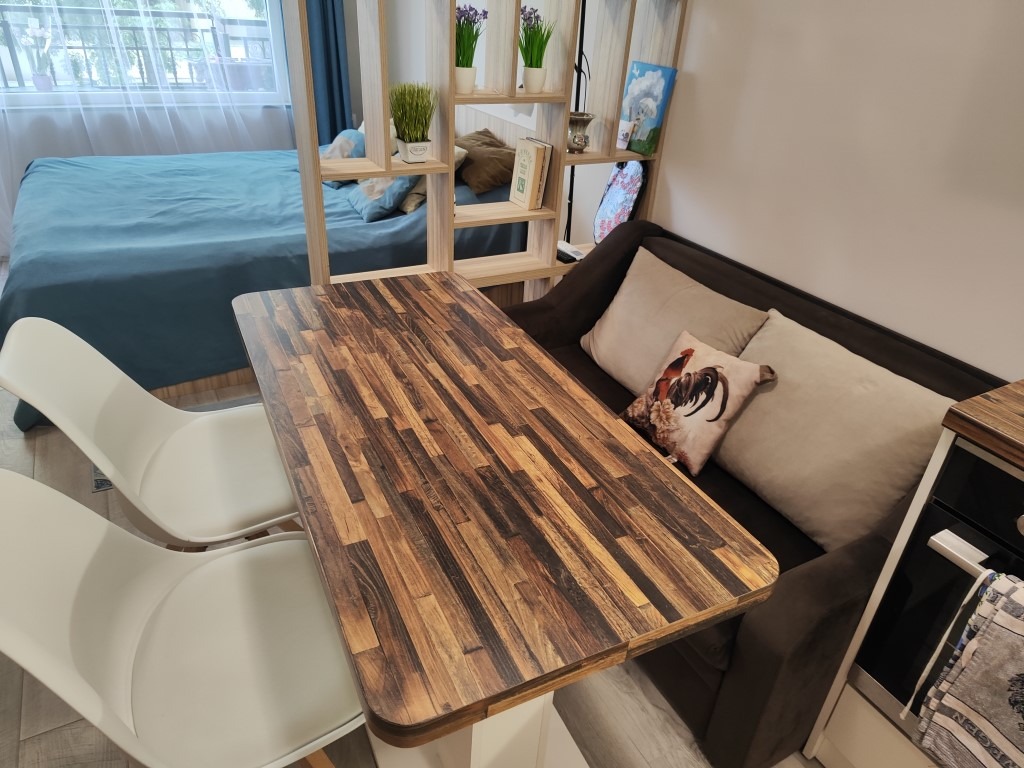 Още с влизането ще ви впечатли усещането за чистота, свежест и уют. Интериорът е изцяло нов, в топли, естествени тонове и скандинавски стил. Всекидневната и кухнята се сливат в просторна и светла зона, в която дървесните акценти и дискретните декоративни елементи придават усещане за дом.