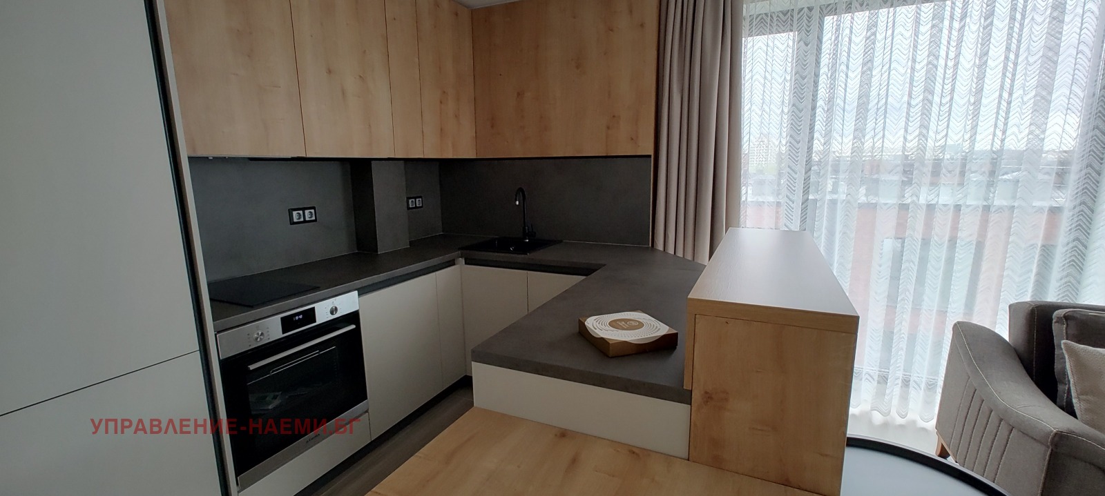 Агенция УПРАВЛЕНИЕ-НАЕМИ.БГ предлага обширен двустаен апартамент с голяма тераса, нов, НАПЪЛНО ОБЗАВЕДЕН.