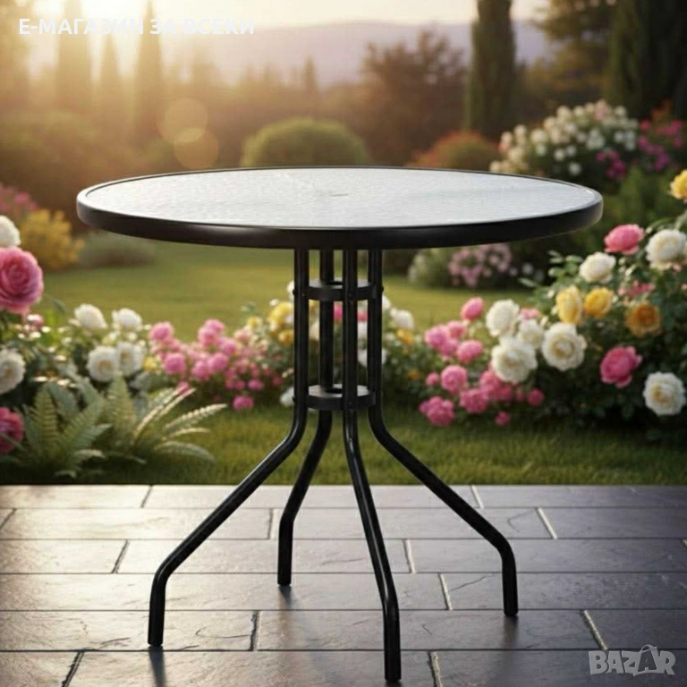 Комплектът включва и стилна градинска масичка със закалено стъкло, която е идеална за напитки, книги или аксесоари по време на почивка.