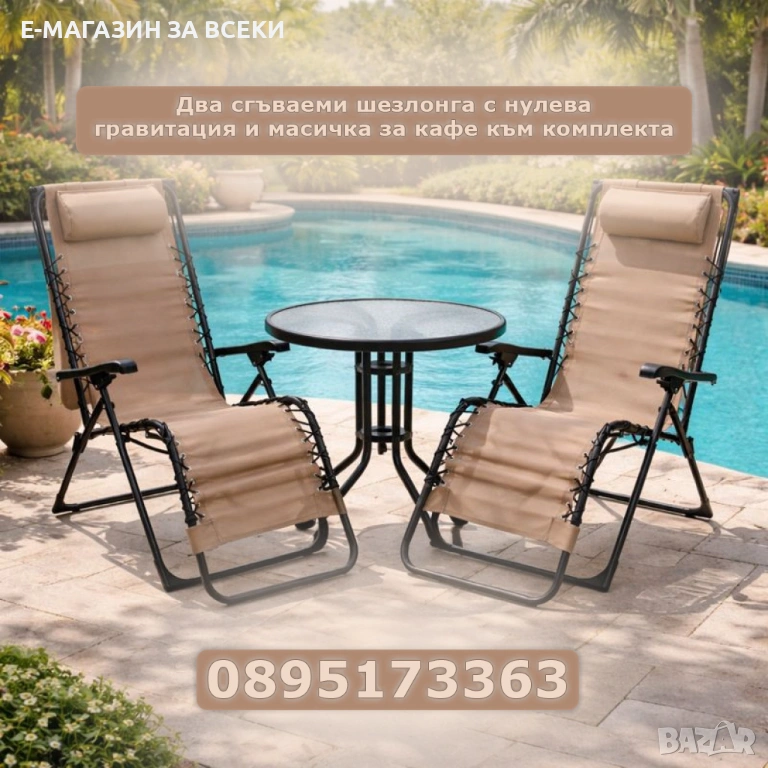 Два сгъваеми шезлонга и масичка за кафе