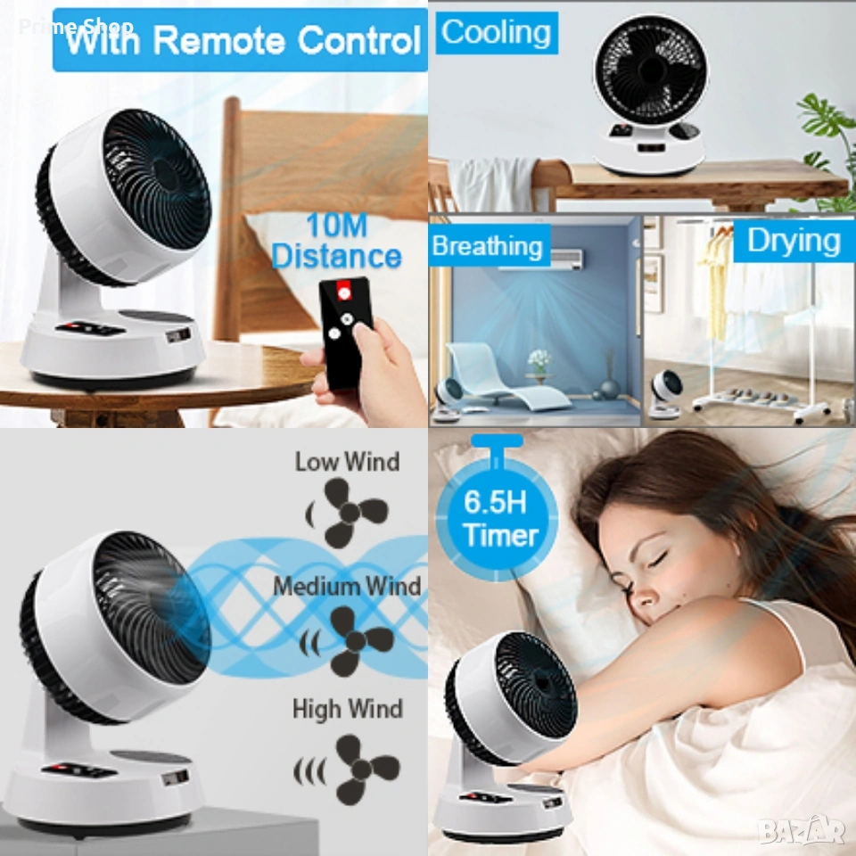 Тагове: настолен вентилатор, циркулационен вентилатор, турбинен вентилатор, вентилатор с дистанционно, тих вентилатор, електрически вентилатор, 40W вентилатор, охлаждане, климатизация, осцилиращ вентилатор