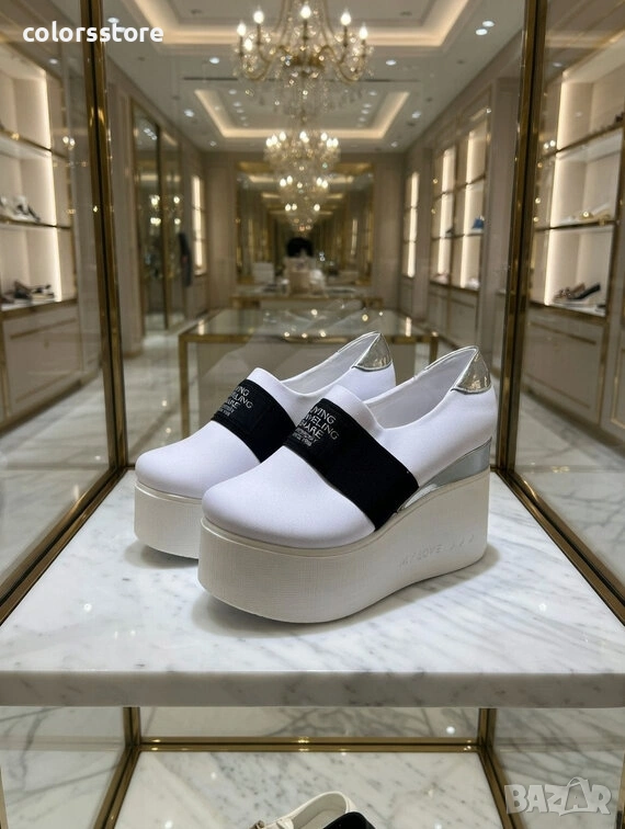 Обувки на платформа - бял текстил - RK120