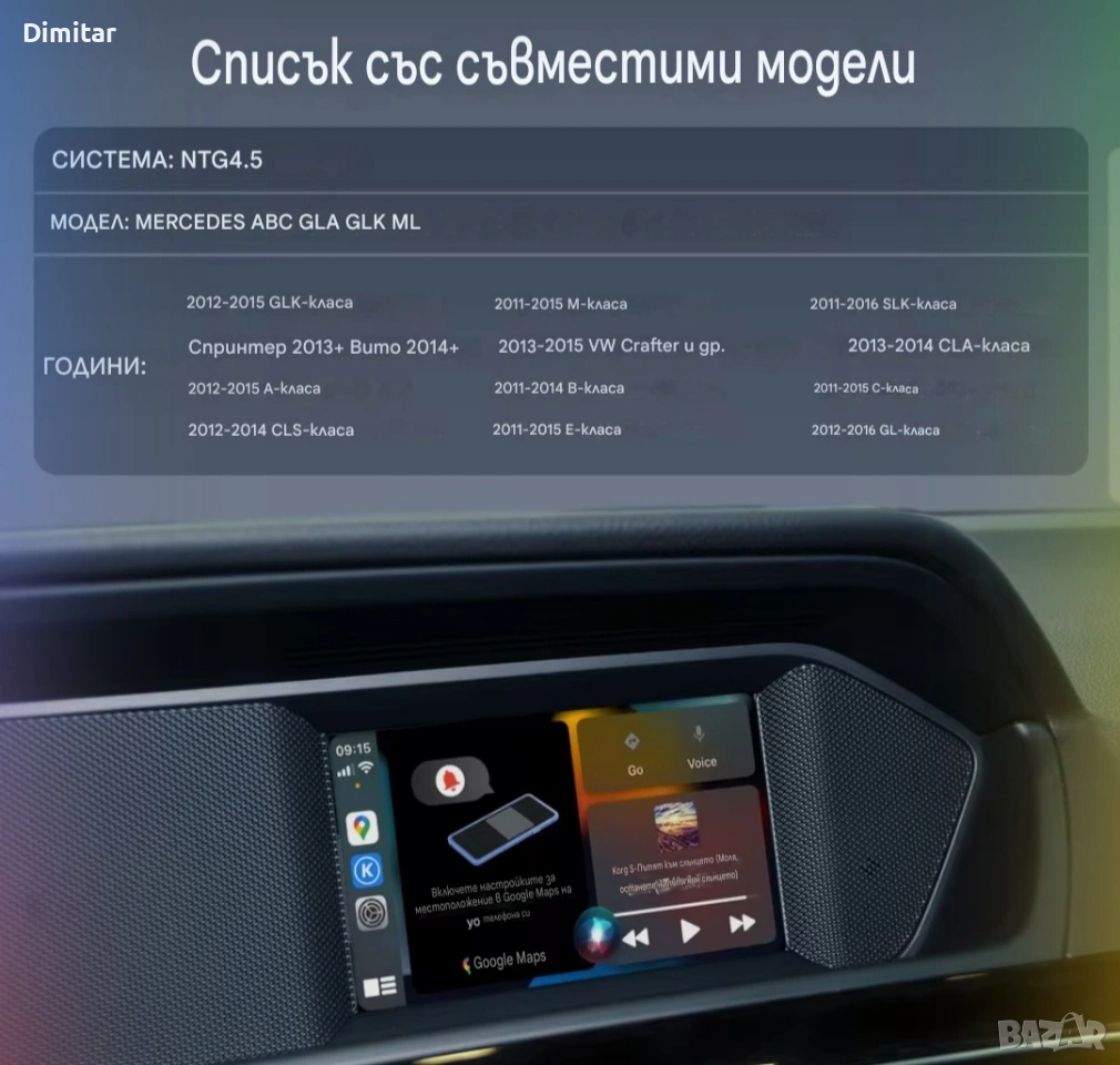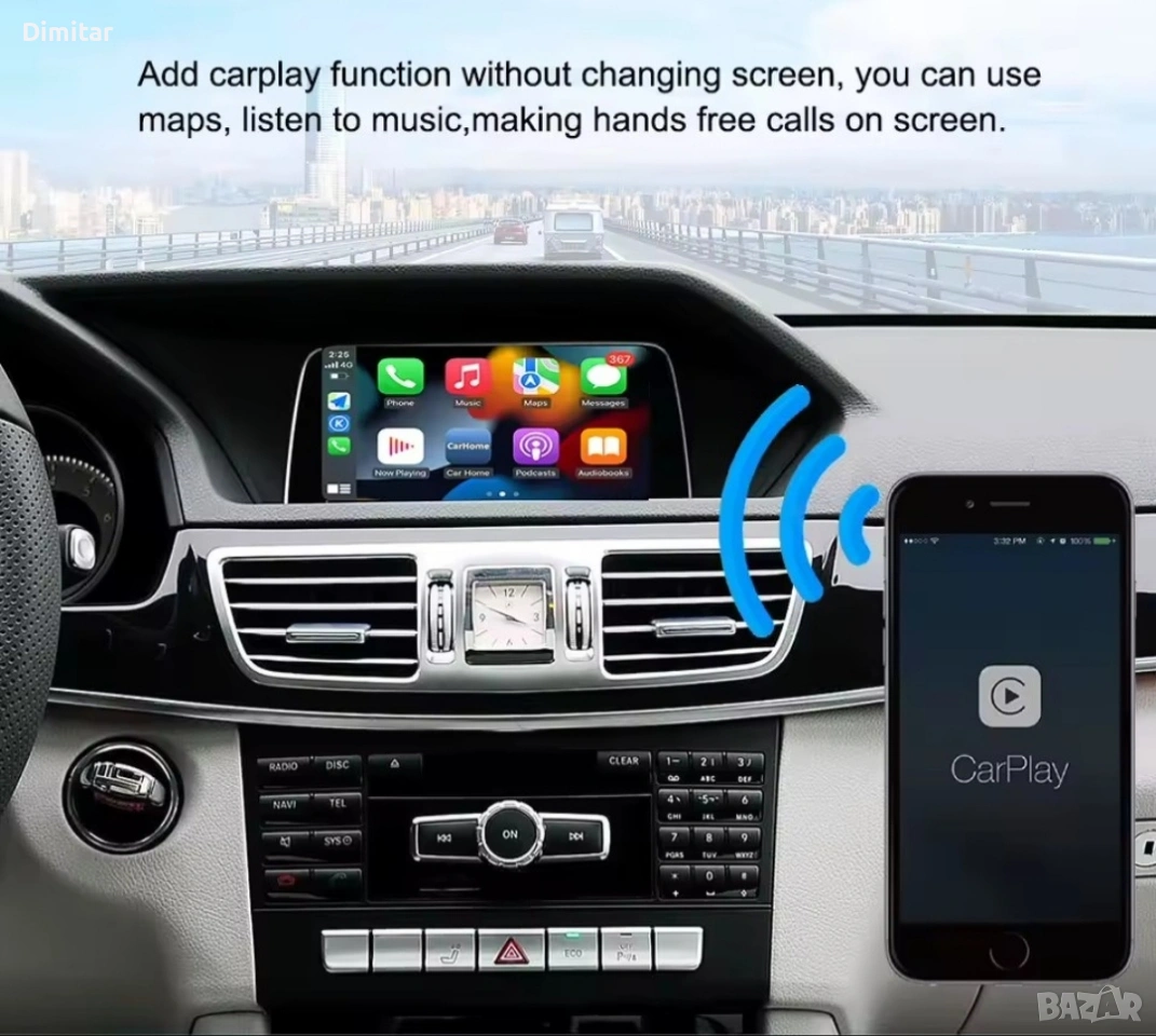 Apple CarPlay и Android Auto модул за вашия Mercedes-Benz лесно и безопасно. Управлявайте навигация, музика, обаждания и съобщения директно от фабричния дисплей и бутони.