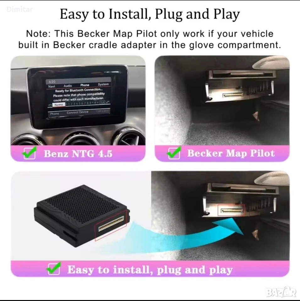 Лесен монтаж – директно в Becker слота, без рязане на кабели и разглобяване