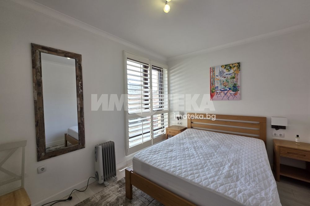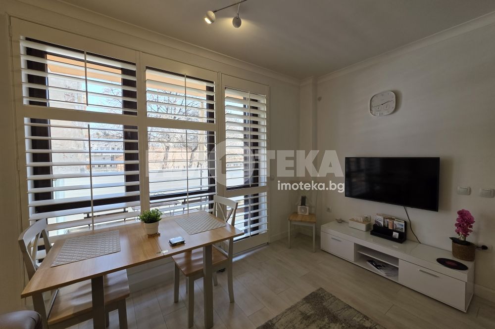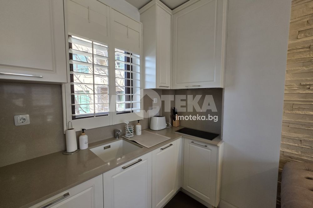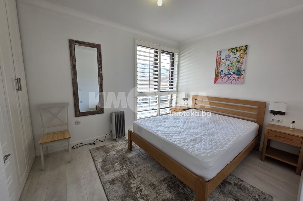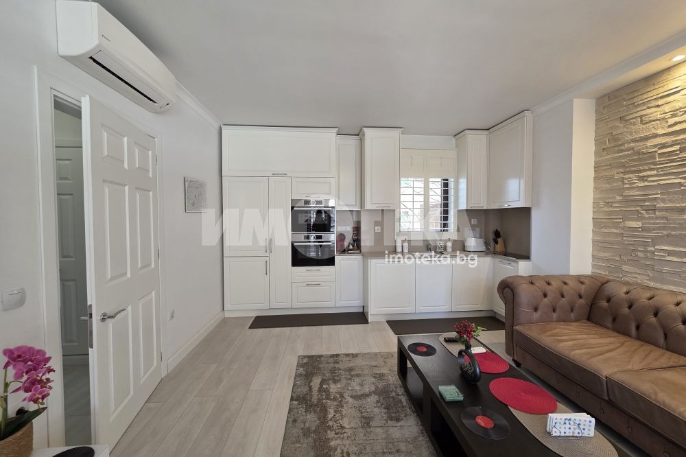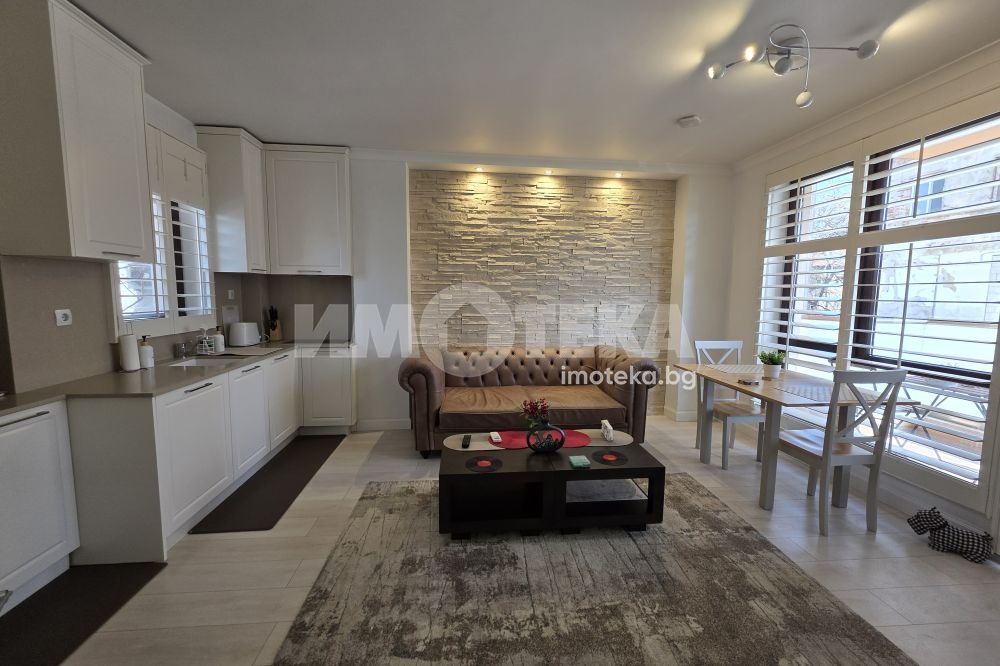 Апартаментът е напълно обзаведен с внимание към детайла и оборудван с висок клас електроуреди Bosch пералня, съдомиялна, микровълнова фурна и фурна за готвене, както и климатик Daikin.