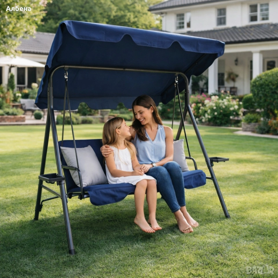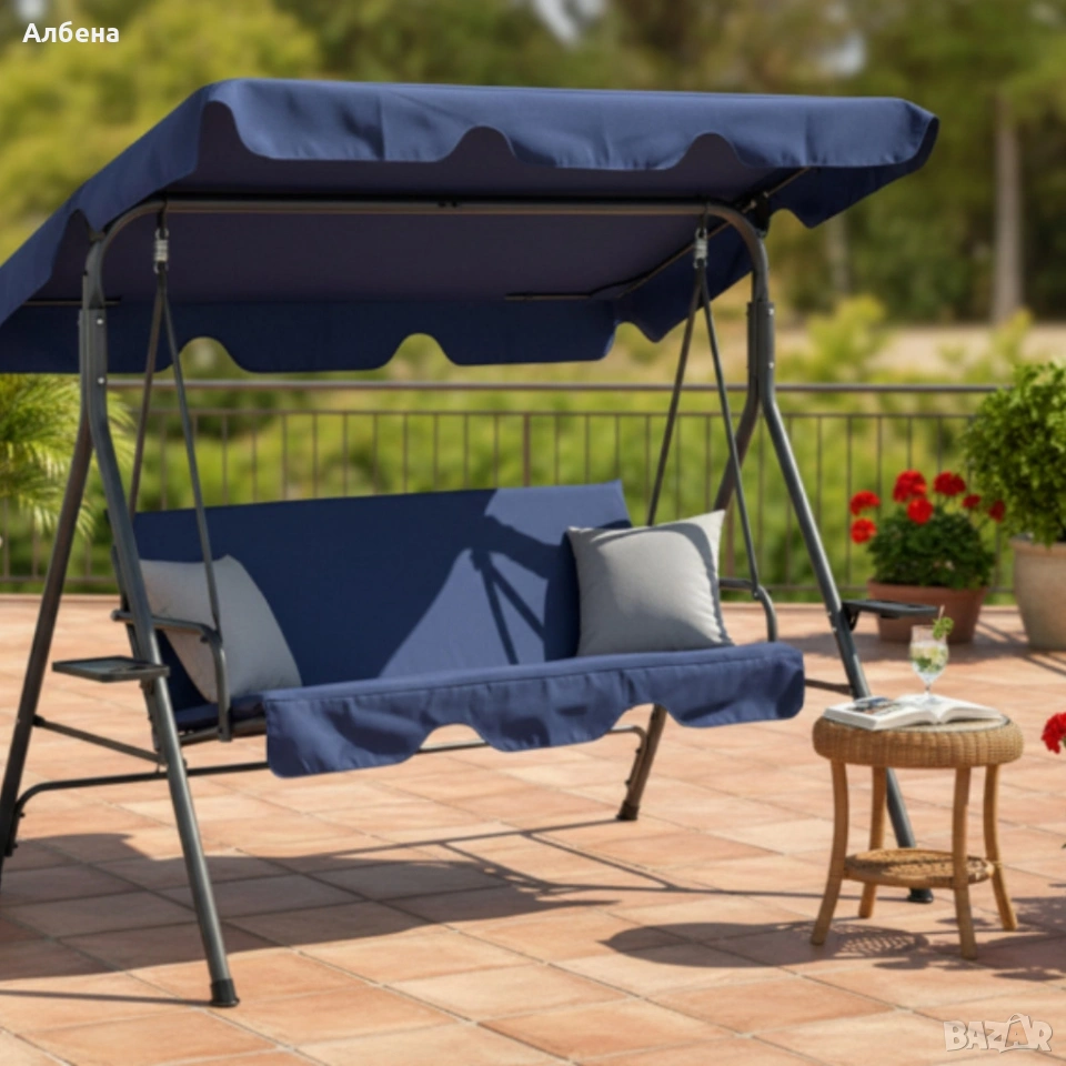 Градинска люлка A-Type със сиви възглавници и поставки за чаши - елегантност и комфортТехнически характеристики на Градинска люлка A-Type със сиви възглавници - елегантност и комфорт