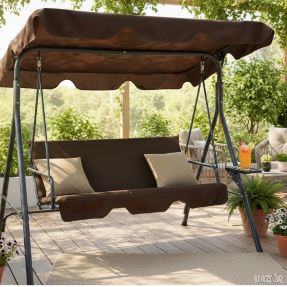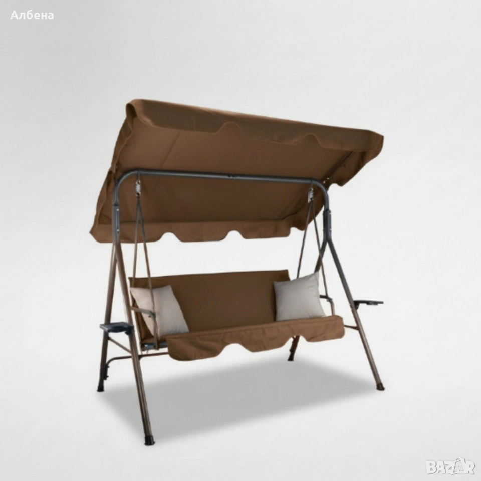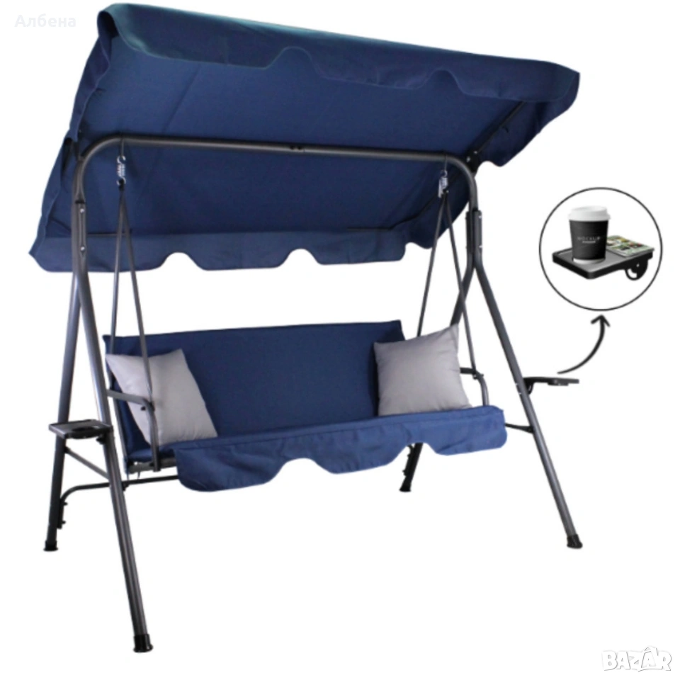 Градинска люлка A-Type със сиви възглавници и поставки за чаши
