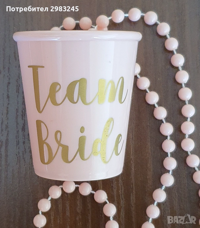 Пластмасова чаша за шотове със златист надпис Team Bride → Обява 53868049