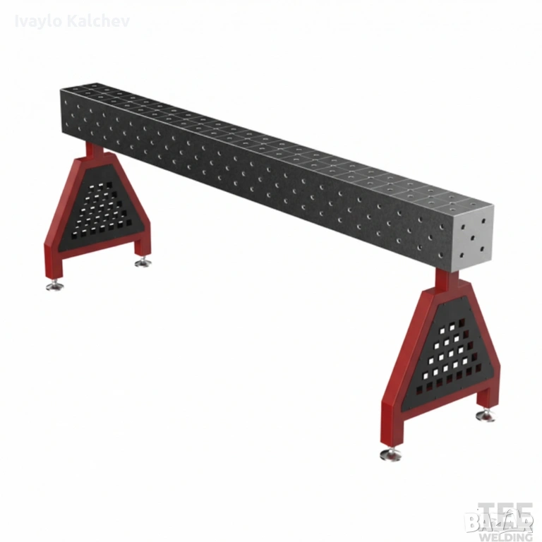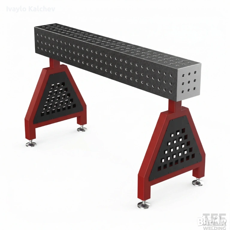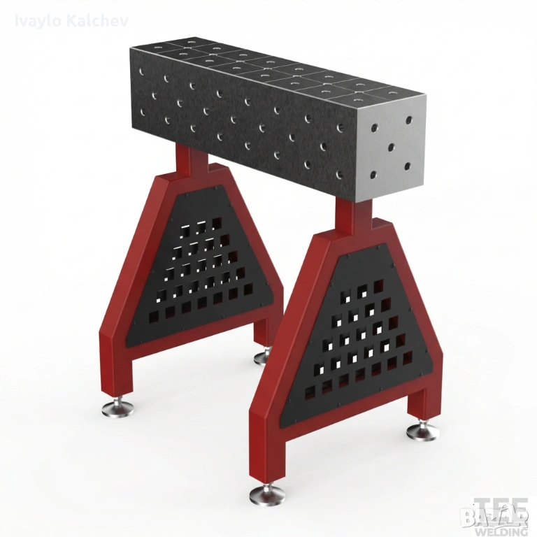 Заваръчната опора се изработва по поръчка според избраната система отвори и конфигурация. Подходяща е за използване заедно със заваръчни маси и позволява удължаване на работната зона, когато се работи с по-големи конструкции.