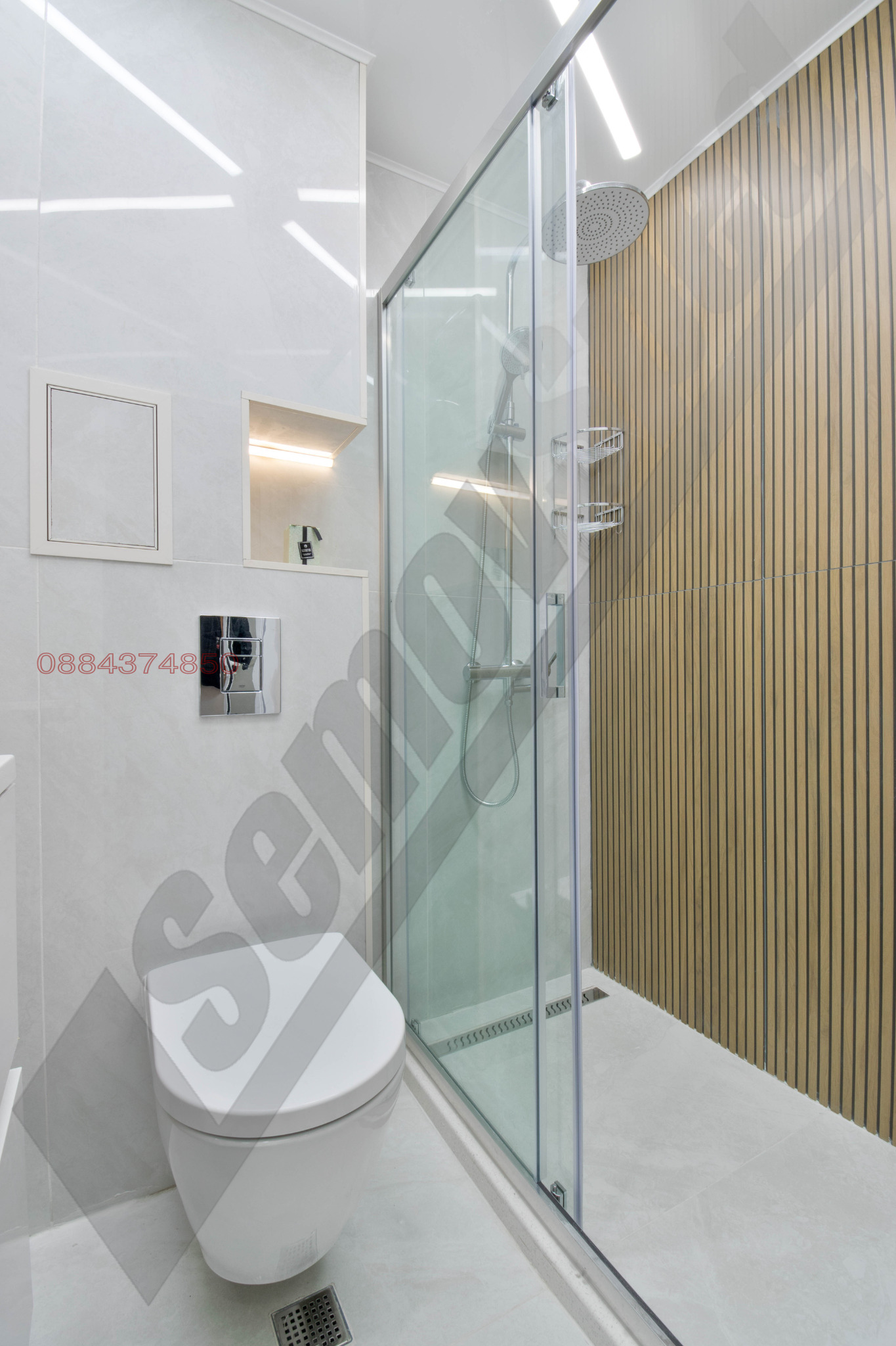 Настилките са висок клас водо- и влагоустойчив ламинат 10 мм и гранитогрес 120х60.