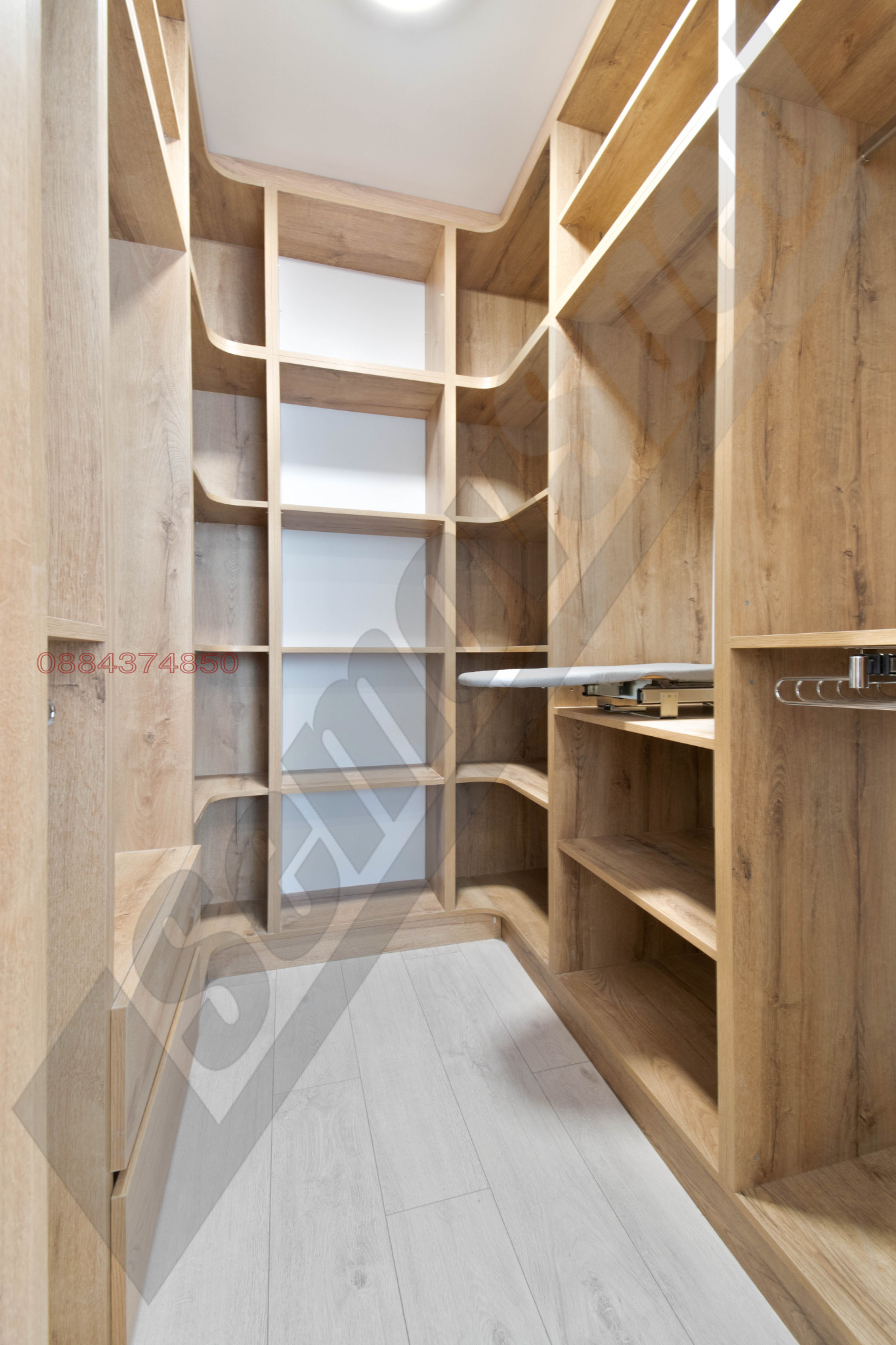коридор с вграден гардероб по поръчка (с предвидено място и изводи за пералня/ сушилня/бойлер); отделно портманто;