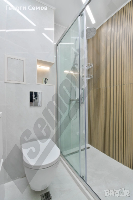 Банята, мокрото помещение и коридорът са с опънат