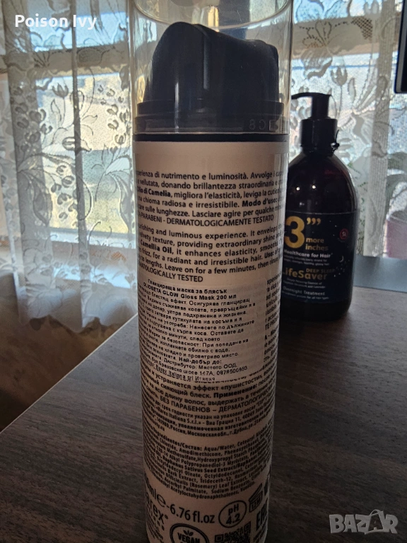 ИЗПОЛЗВАНО - използвана веднъж маска за коса Olioseta Гланцираща маска за блясък 200 мл GLOW Gloss Mask, липсват 20 мл (имам нов реконструктор на Олиосета, същото тегло и претеглих на кухненската везна липсващото количество), цена в рибката 17 евро