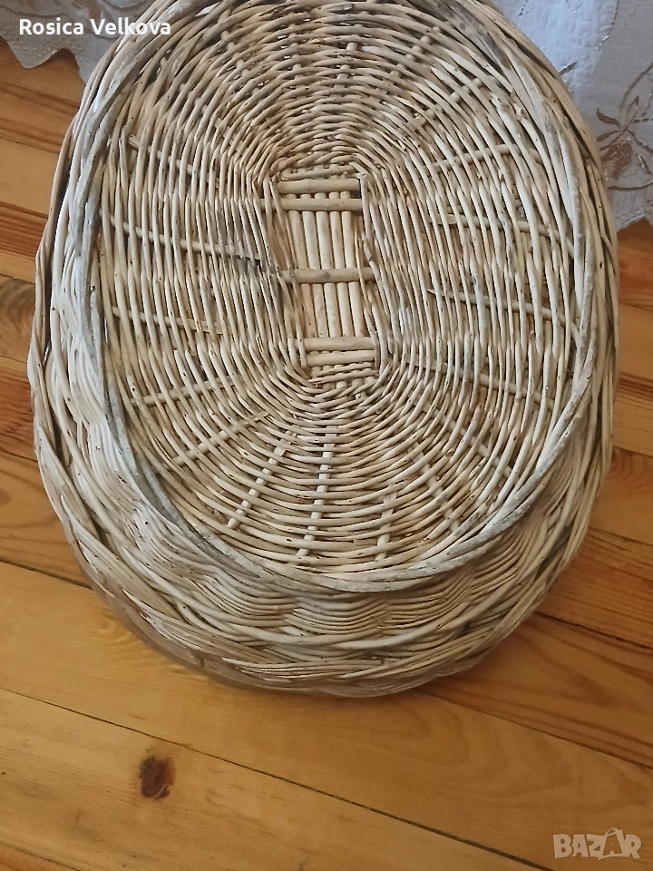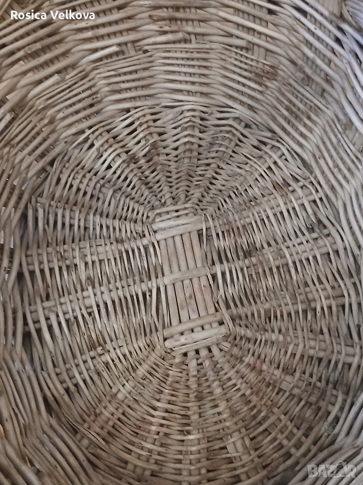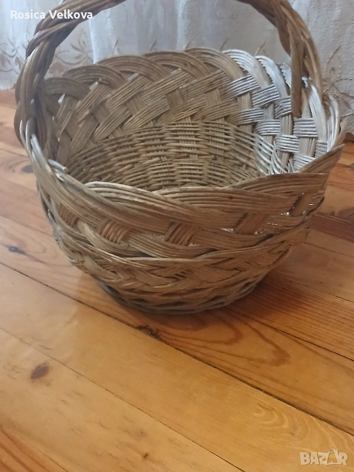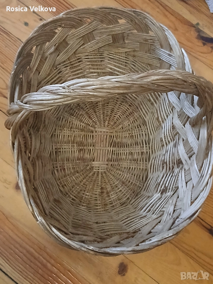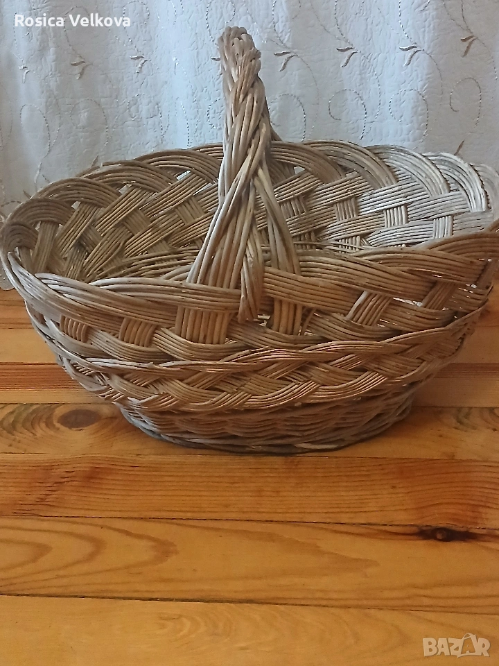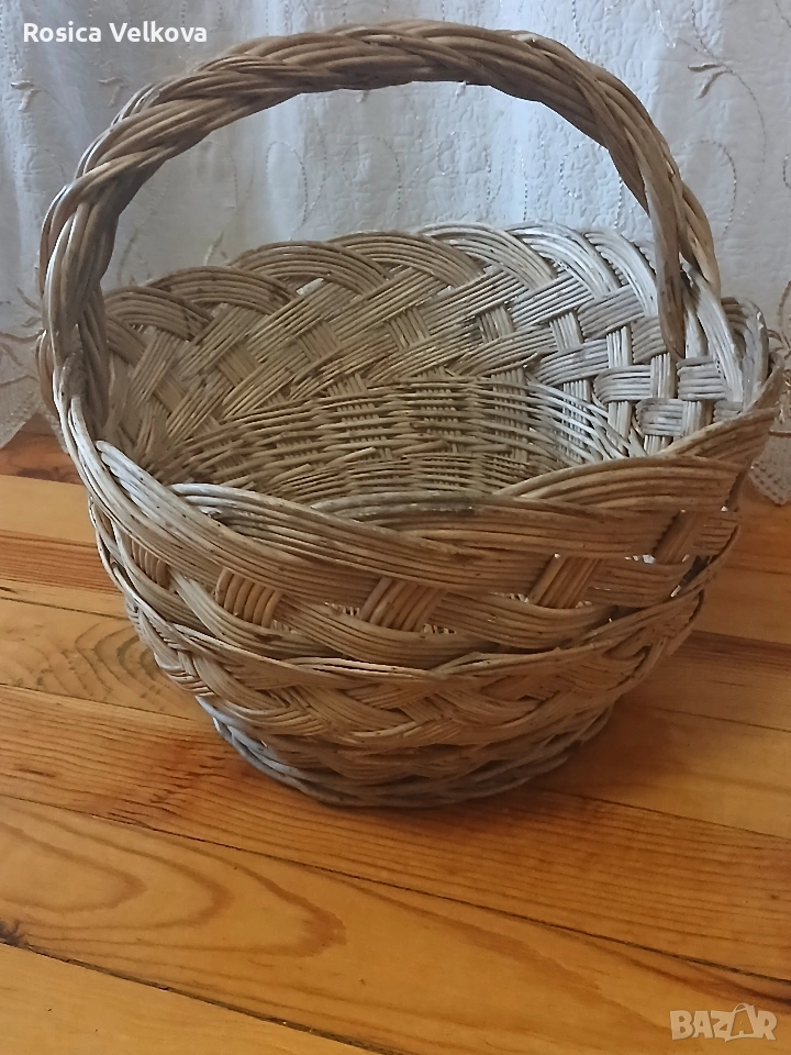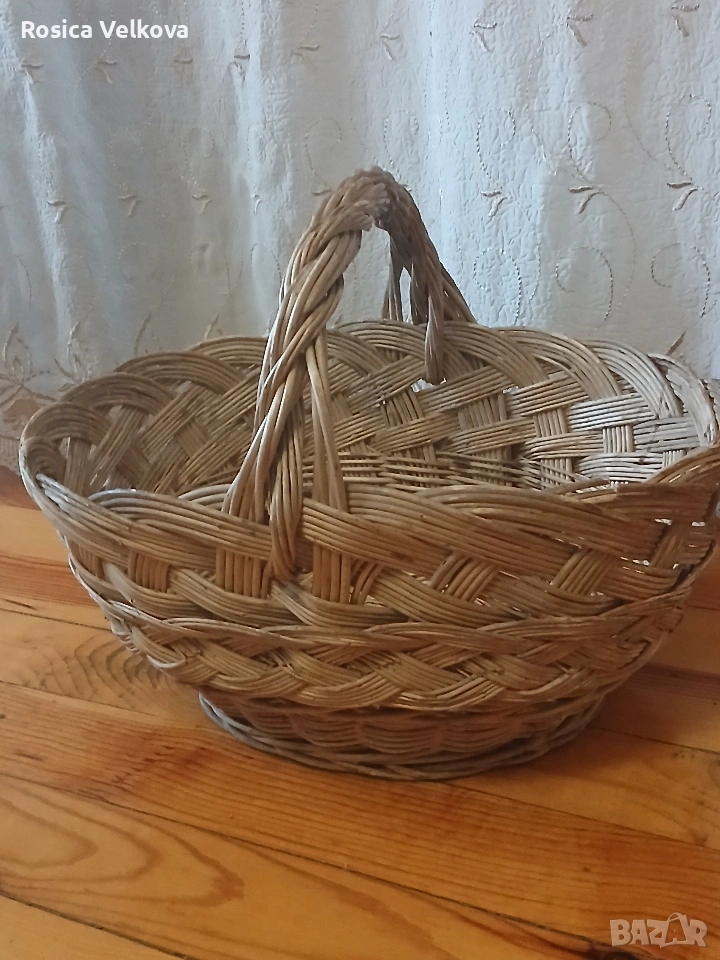 Стара ръчно плетена кошница запазена и здрава височина 38 см с дръжката, 23,5 см височина без дръжката дължина 47 см ширина 27 см
