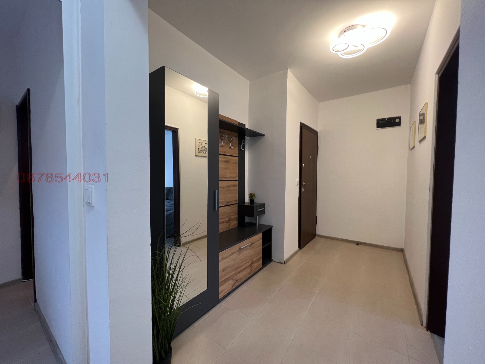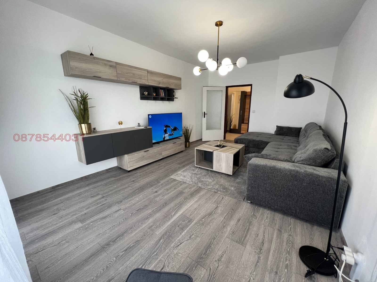 Предлагаме за дългосрочен наем просторен и светъл апартамент, разположен на 6-ти етаж в сграда с асансьор. Апартаментът е в отлично състояние, след основен ремонт, с ново обзавеждане и нови електроуреди, включително климатици, кухненско оборудване (печка, миялна, пералня, сушилня, хладилник, кафемашина), голям телевизор и интернет.