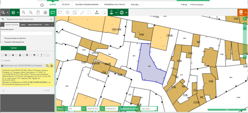 Продавам Поземлен имот 56784.520.848, област Пловдив, община Пловдив, гр. Пловдив, район Централен, п.к. 4000, ул. Ген.Скобелев 17-б, вид собств. Частна, вид територия Урбанизирана, НТП Ниско застрояване (до 10 m), площ 168 кв. м.