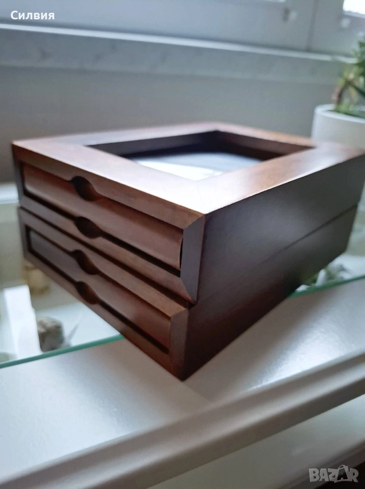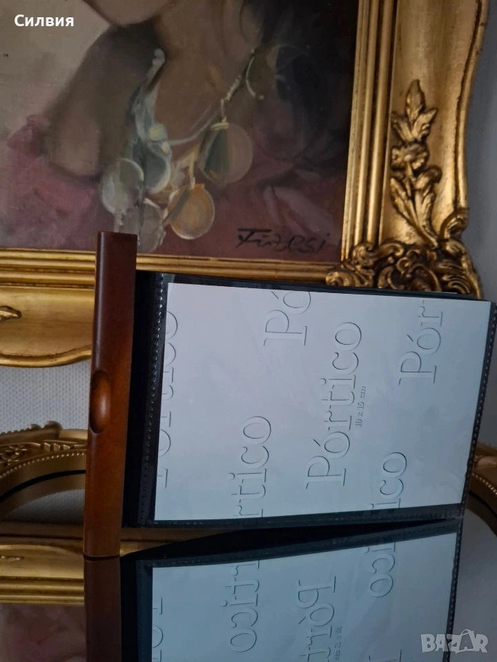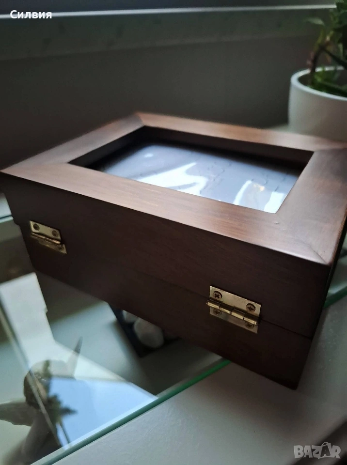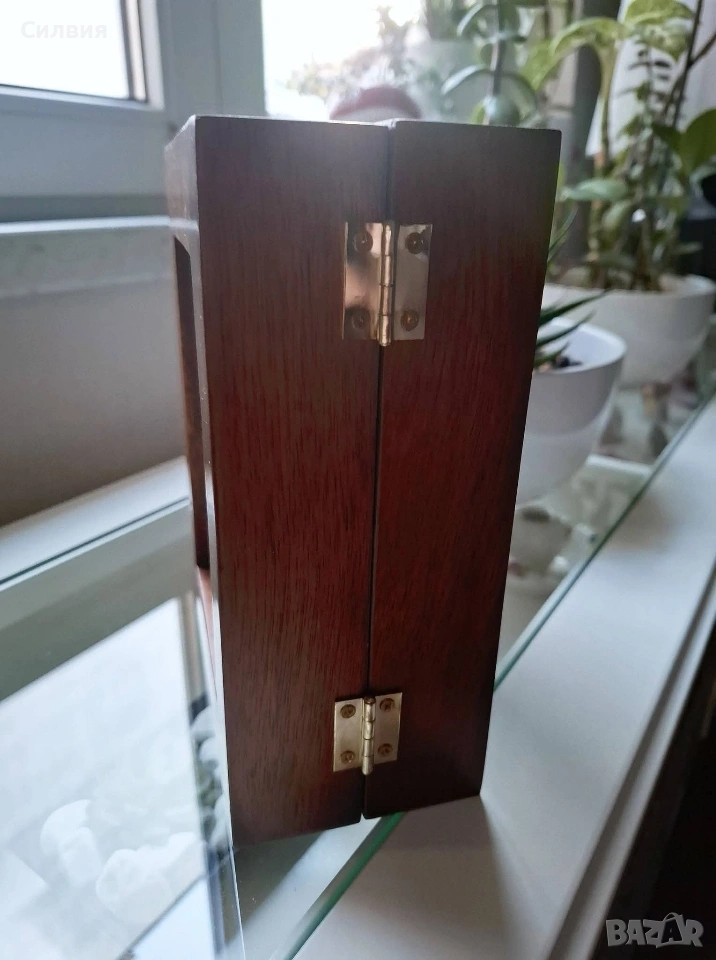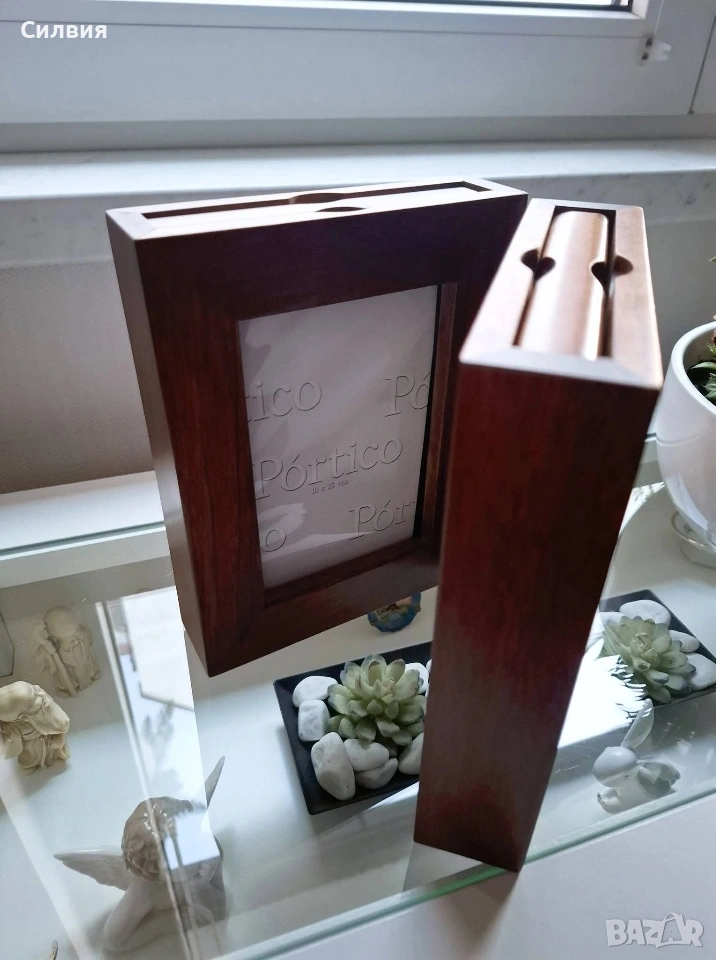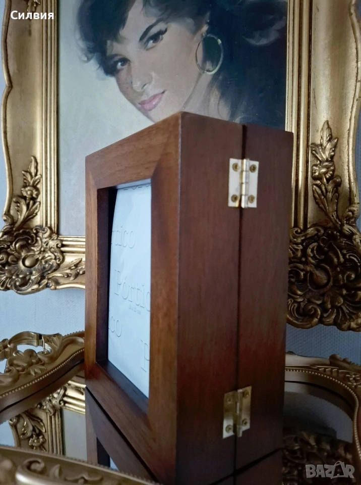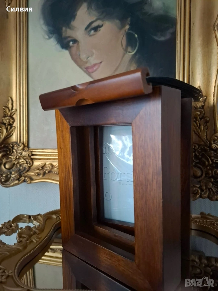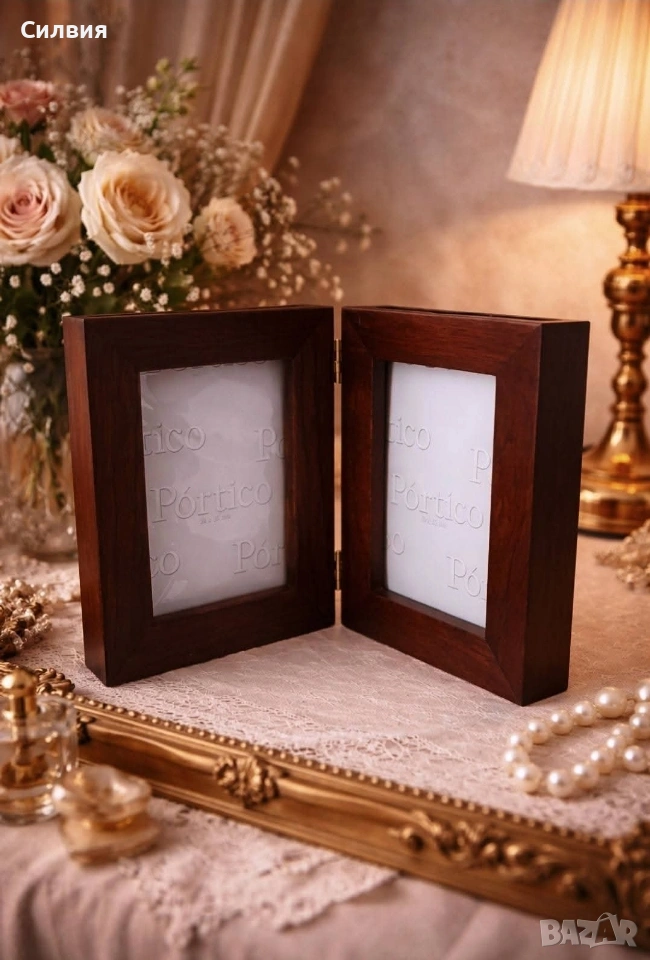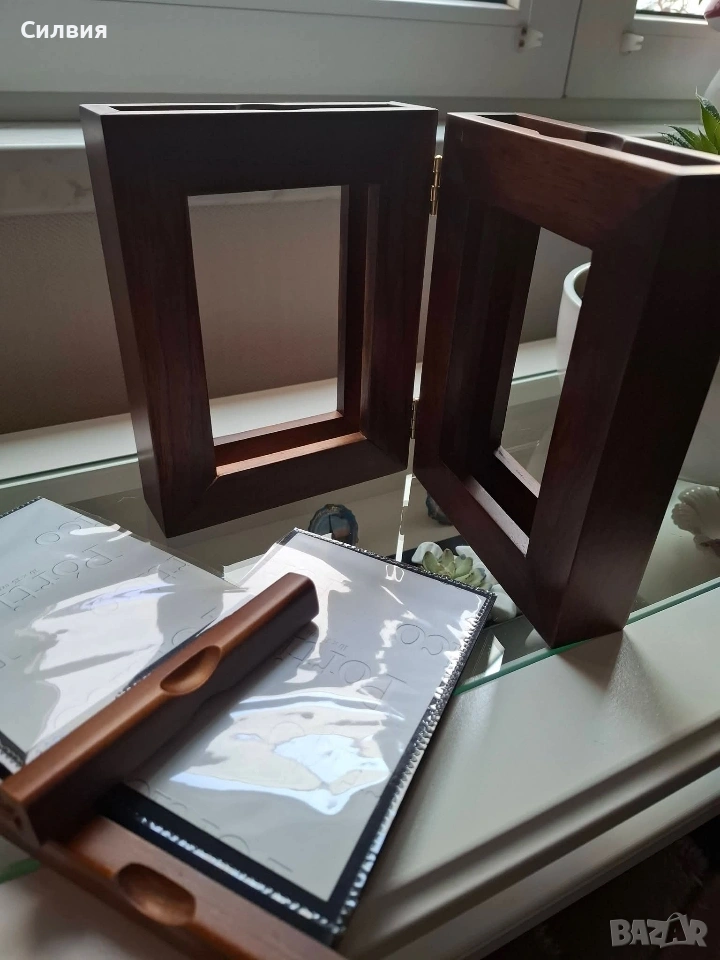 рамка със скрити фотоалбуми – Ретро шик. Шедьовър на декоративното изкуство, който съчетава в себе си топлината на дървото и сантименталността на спомените. Тази двойна дървена рамка не е просто аксесоар за дома, а малка библиотека за Вашите спомени. Материал: Висококачествено масивно дърво с богат, тъмен орехов нюанс и фина матова повърхност. Дизайн: Двойно сгъваема конструкция тип „книга“ със здрави месингови панти, които позволяват рамката да стои стабилно под различен ъгъл. Скрита функционалност: Всяко крило на рамката всъщност е капак на дискретно вграден фотоалбум. Изтеглящите се касети съдържат джобове за снимки, защитени с фолио, което прави разглеждането им лесно и приятно. Стил: Изчистен, класически дизайн, който перфектно допълва интериори в стил „антикварна атмосфера“ или рустик. За разлика от обикновените рамки, този модел ви позволява да изложите две водещи снимки на преден план, докато останалата част от историята остава защитена и подредена вътре. Изключително подходяща за: Семейни портрети и архиви; Сватбен подарък или подарък за юбилей; Елегантен акцент върху бюро, камина или скрин. Състояние: Отлично, без видими следи от употреба. Солидна изработка, която ще служи на поколенията. Цена: 3️⃣0️⃣€ 58,68лв Доставка: Изпращам с опция преглед и тест чрез Еконт.❥⊱╮🩷☆♪ ░─❥⊱🩷✿L░o░V░e░❥─❥⊱🩷✿⊱╮🩷☆♪ღ
