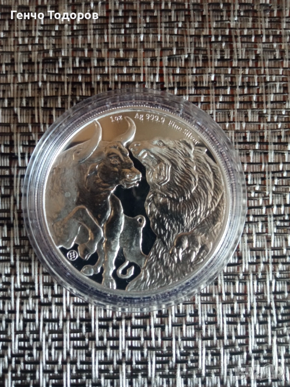 Сребърна монета 1OZ Бик и мечка ЧАД 2023 → Обява 53868842