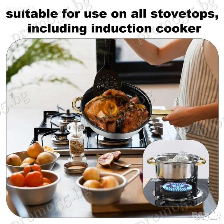 Тези съдове за готвене от неръждаема стомана са подходящи за кухни, ресторанти, хотели, кафенета, търговски центрове, общежития или офиси. Могат да се използват за индукционни котлони, газови и електрически печки.
