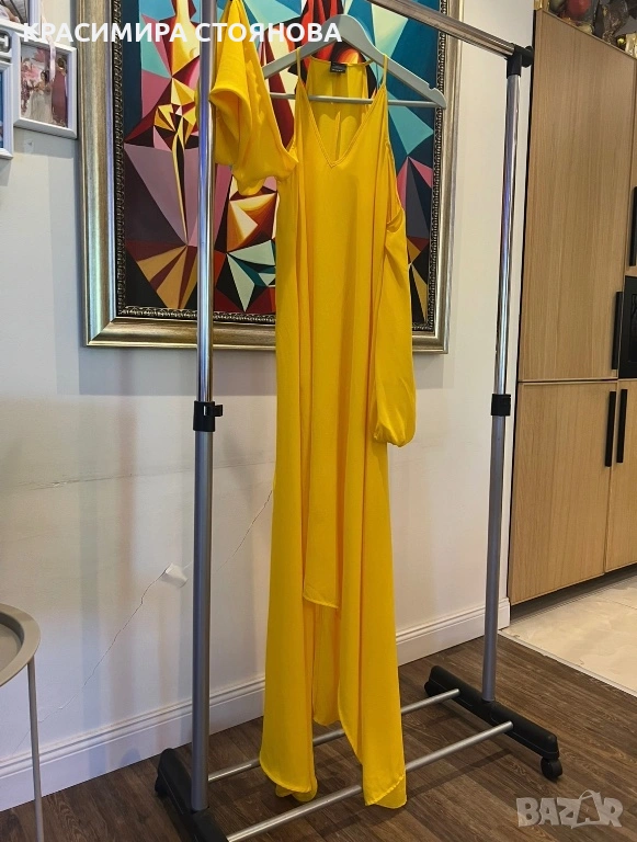 Елегантна рокля на марката с отворени рамене и дълъг ръкав