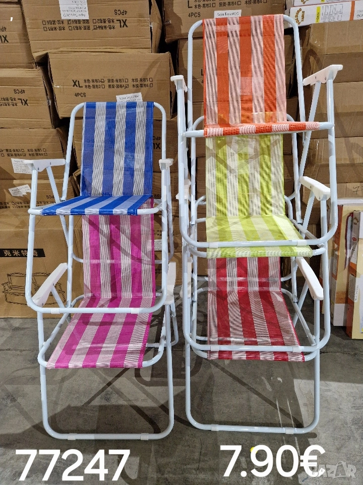 Продавам на едро нови столове,шезлонги за къмпинг и плаж.Цените са приложени в снимките.