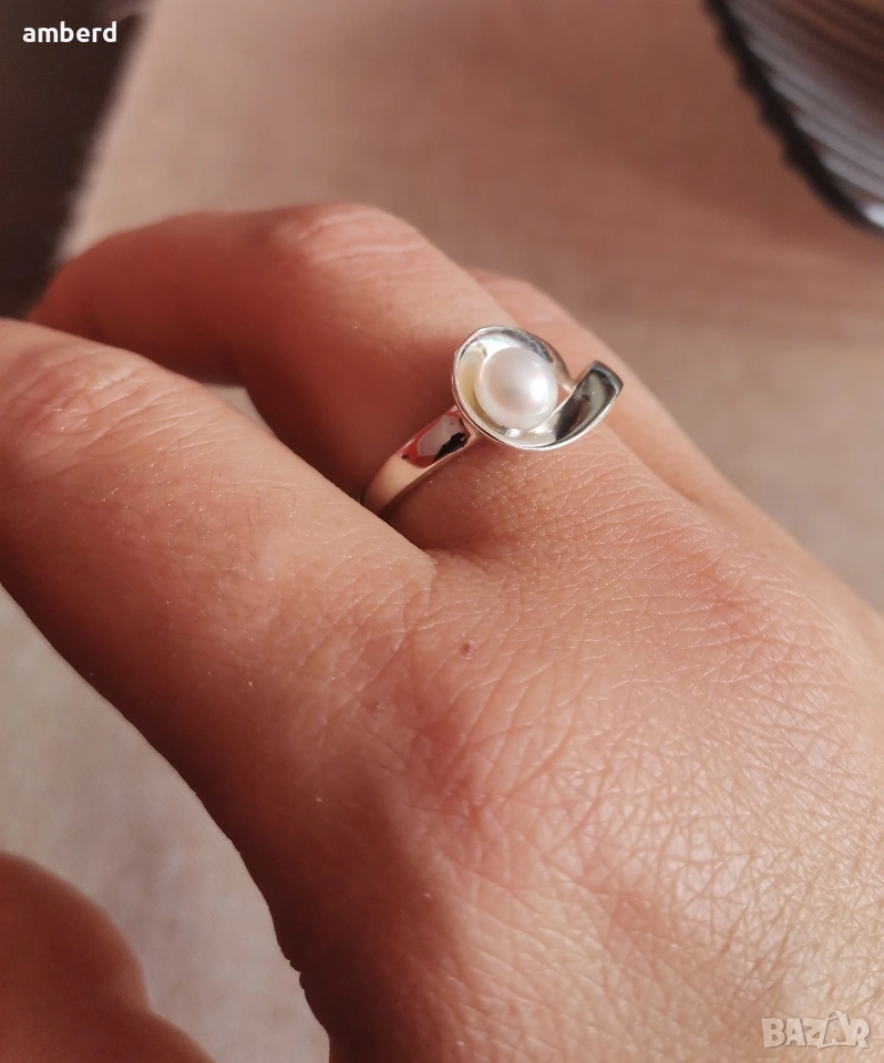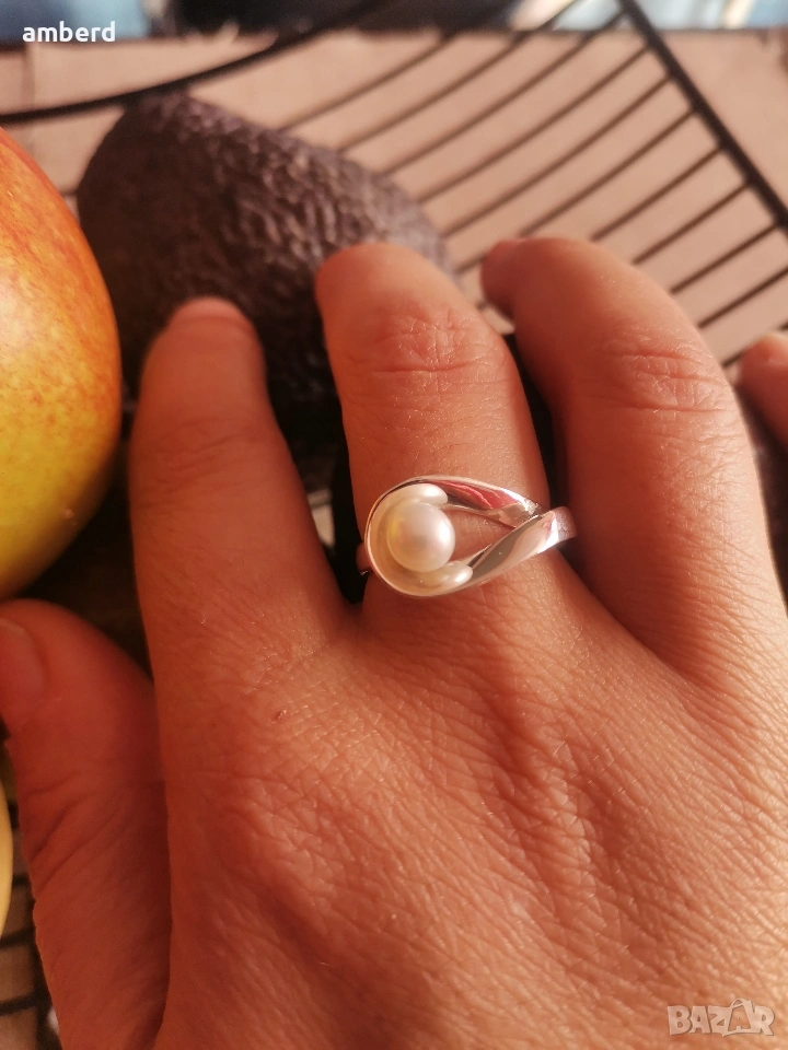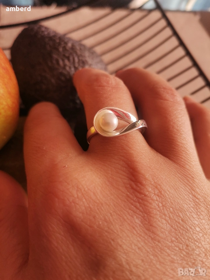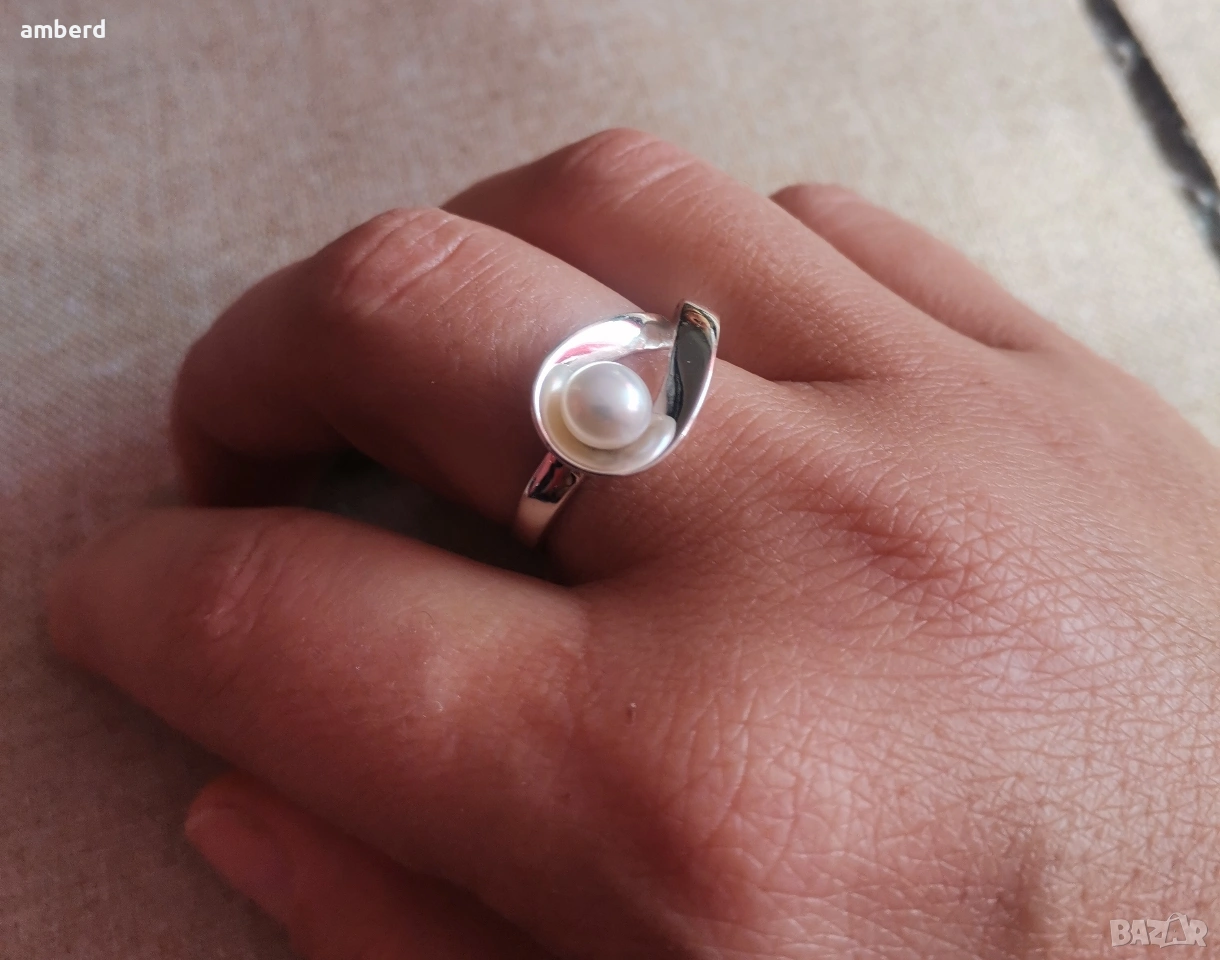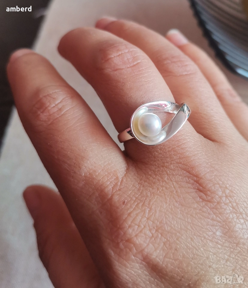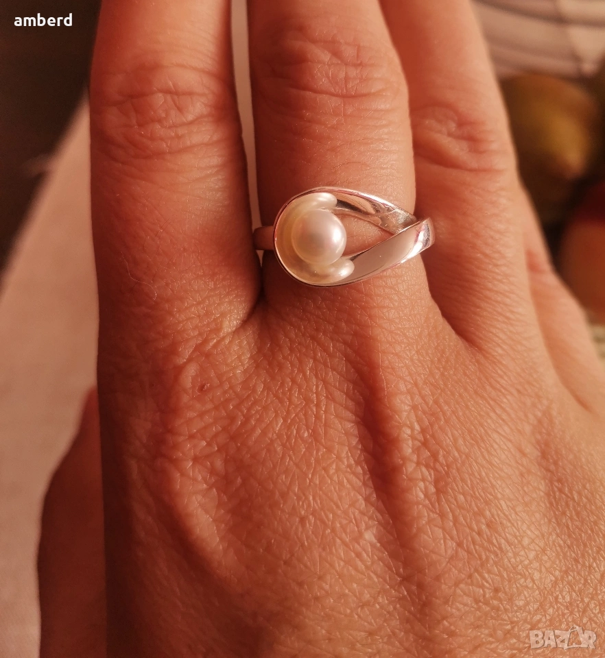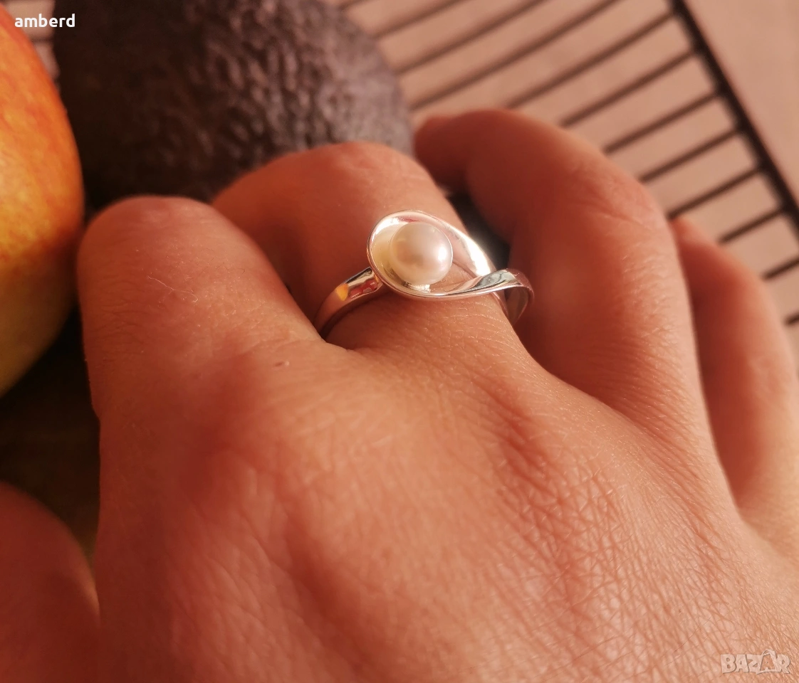 Страхотен пръстен, изработен от сребро проба 925 и 1 култивиран перла. Вътрешен диаметър - 18.6мм. Тегло - 3.55 гр. Можем да изработим този модел в желан от вас размер.