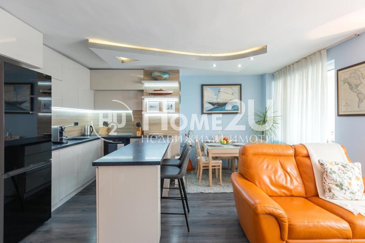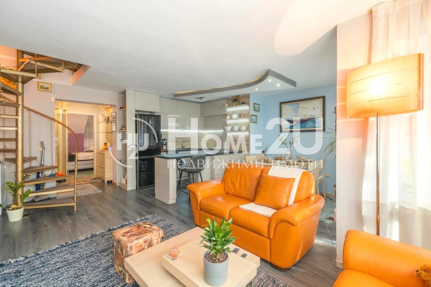Представяме Ви изключително уютен и функционален мезонет, обзаведен с внимание към всеки детайл. Разпределението е на две нива, състои се от: входно антре, просторна дневна с трапезария и модерна кухня, изпълнена с висок клас електроуреди, родителска спалня с излаз на тераса, на второ ниво - детска стая също с излаз на тераса и баня с тоалет, втори дневен тракт, с опция за трета спалня, втора баня с тоалетна. Имотът се предлага напълно обзаведен, с качествени мебели и електроуреди, готов за директно нанасяне без необходимост от допълнителни инвестиции. Жилището е с чиста площ от 118,47 кв.м , намира в нова тухлена сграда, с много добре поддържани общи части. Района е изключително комуникативен в непосредствена близост до Морската градина, детска градина, училище и пазар Чаталджа , предлага удобства, спокойствие и бърз достъп до централната част на града.