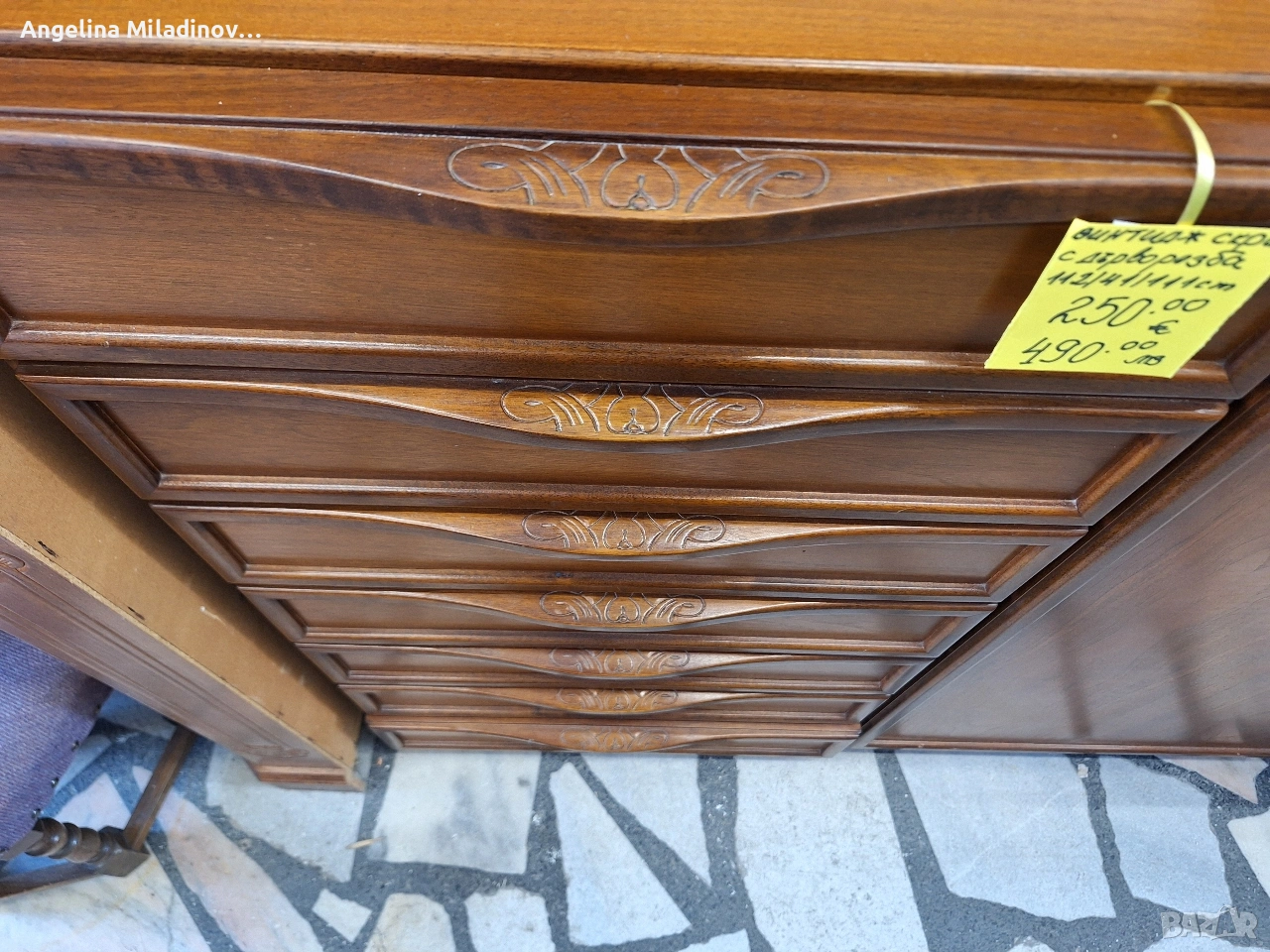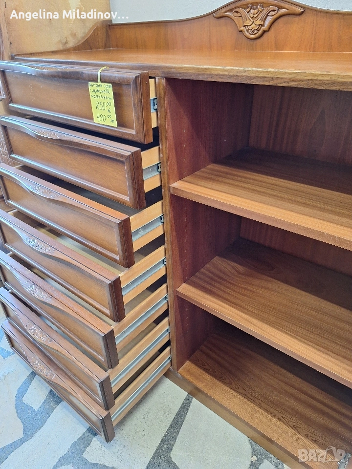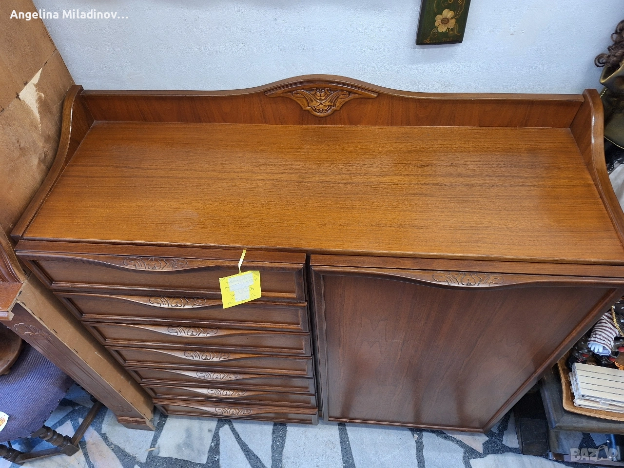 Скрин Mid Centory. Луксозен скрин Mid Centory с много чекмеджета и рафтове. Заоблени дръжки с фина дърворезба и изчистени форми правят скрина интересен и различен. Подходящ за спалня или шкаф за обувки. Удобни размери. Отлично състояние. Разгледайте и другите ми обяви. Последвайте ни и във фейсбук Мебели шик. Предлагаме и изгоден транспорт за цялата страна. Размери: Дължина - 112 см. Ширина - 41 см. Височина - 111 см. Цена - 250 €. 490 лв. vintagemebel.olx.bg