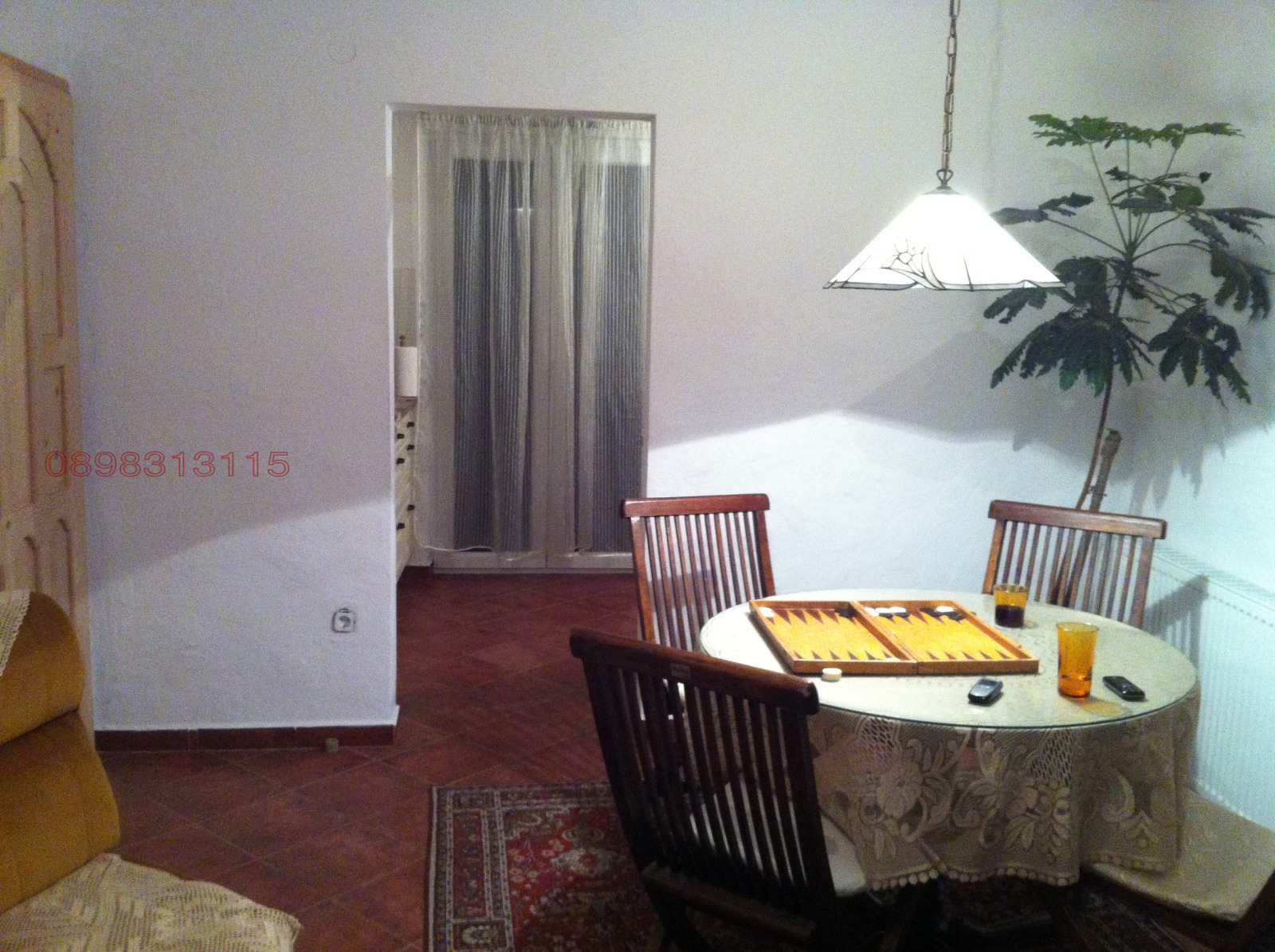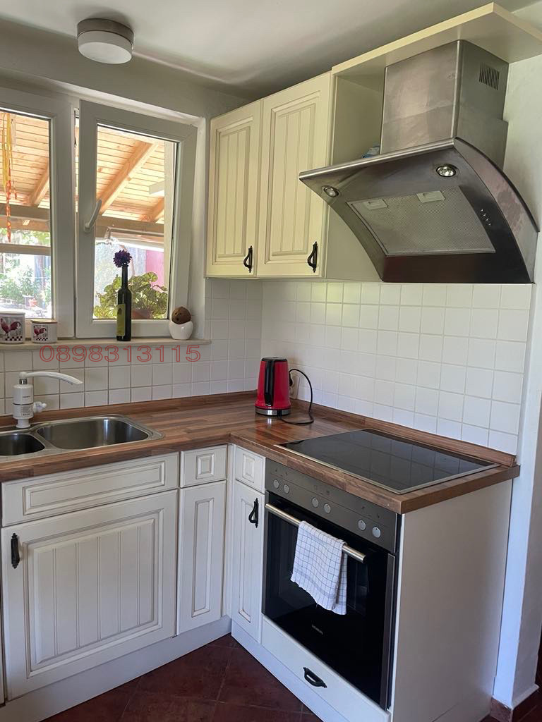 немска кухня, всекидневна, малка спалня със собствена тоалетна, вход към пристройката. Пода е направен с испански теракот.