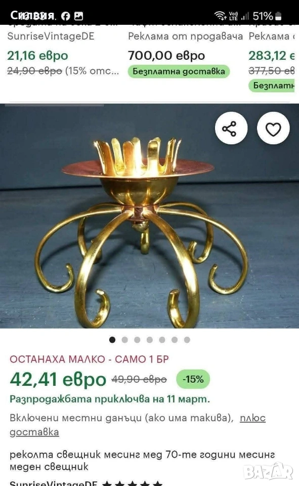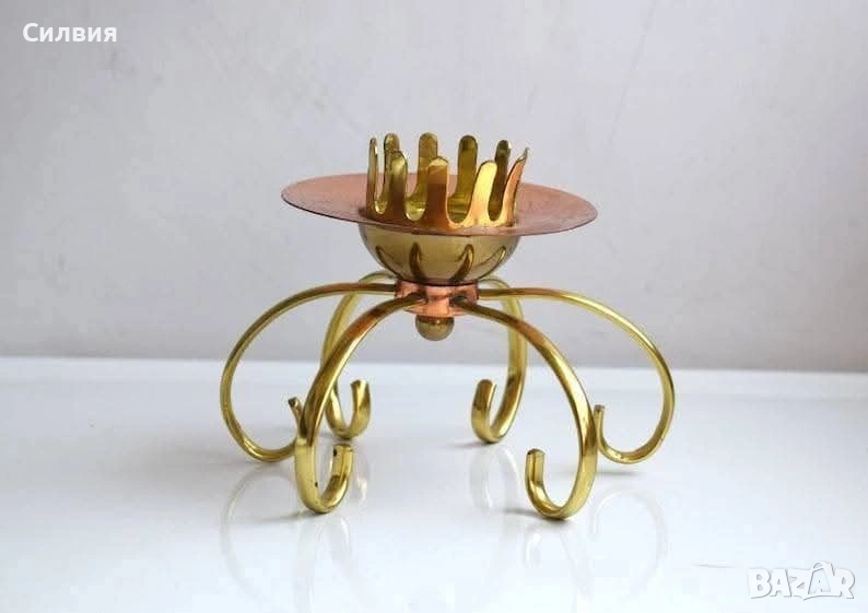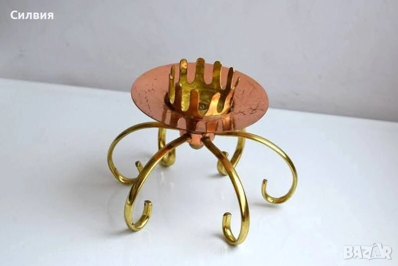 ВИНТИДЖ свещник в стил Ар Нуво Масивна месингова медна плоча в комбинация със златен месинг. Размери: Височина: 12 см, Диаметър - 16см► Цвят: Бронз, Антично злато► Период: Средата на 20-ти век► Стил: Минималистичен, Модерен от средата на века. Цена 3️⃣0️⃣€ 《58,68лв 》 🌷 ೋ🌷 ೋ🌷 ೋ🌷 ೋ🌷 ೋ