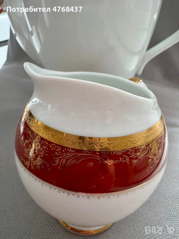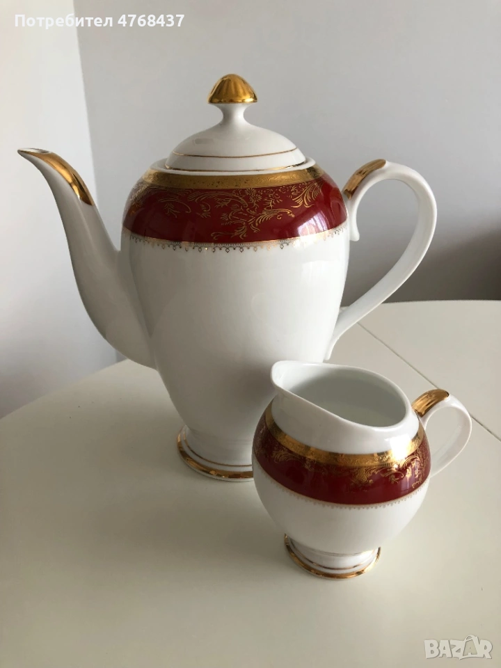 Красив порцеланов комплект – кана за кафе и каничка за мляко (сливочник).