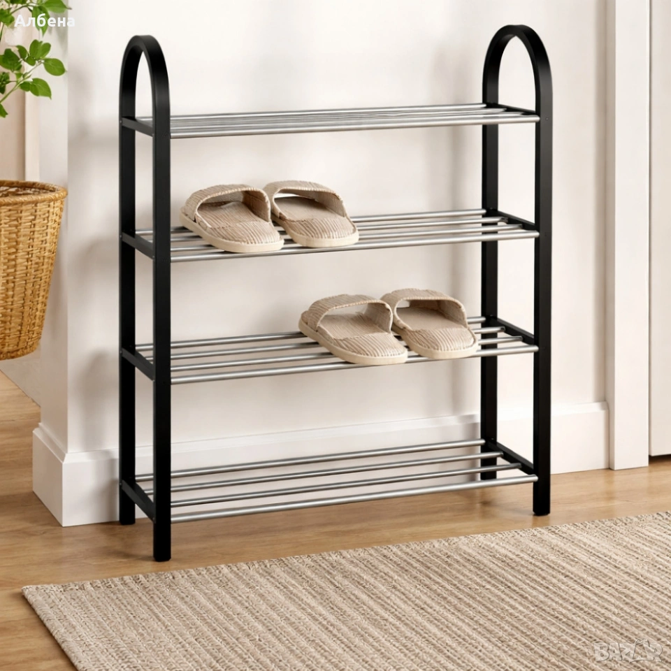 Подреди обувките си бързо и удобно с тази компактна етажерка на 4 нива. Идеално решение за антре, коридор или малки пространства, където всеки сантиметър е важен.