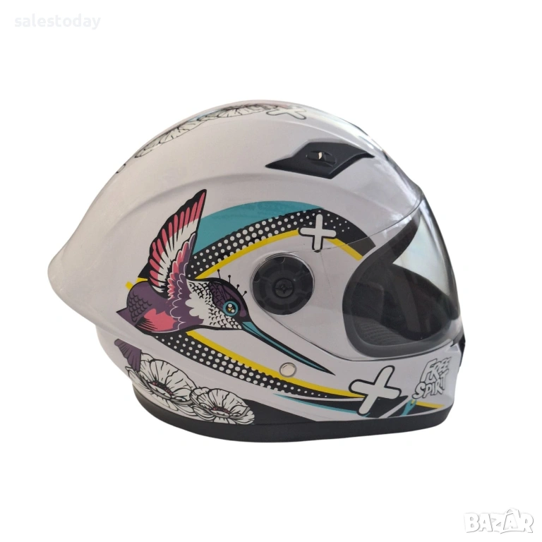 Детска Каска със слюда Bird, Бял- Гланц → Обява 53869873