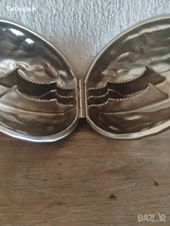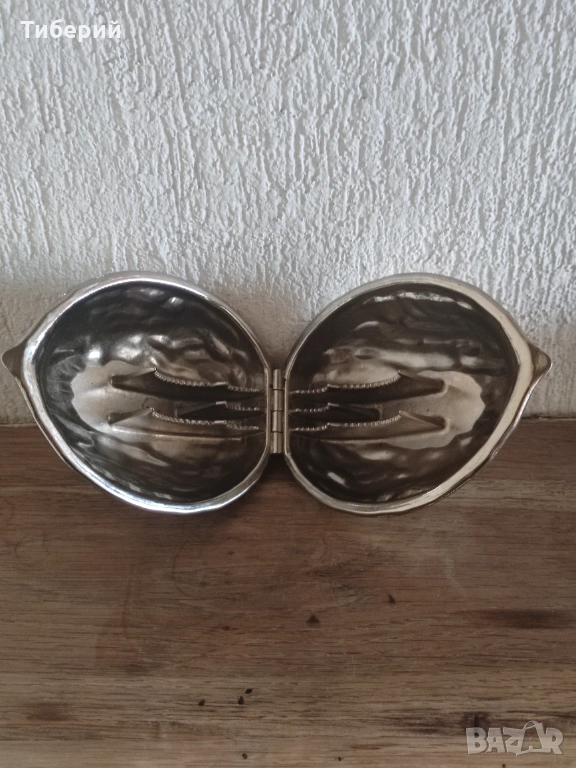 Продавам уникална ретро орехотрошачка с формата на голям орех. Стил: Mid-century Modern, колекционерски модел от 60-те години. Отлично състояние, като ново, здрава панта и работещ механизъм. Подходяща за чупене на орехи, бадеми, лешници и други ядки.
