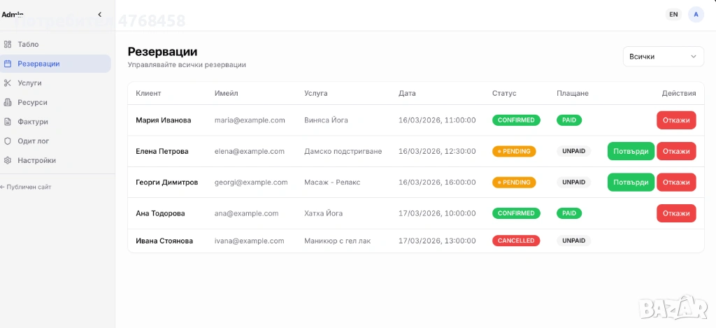 Уебсайт с резервационна система за студиа, салони и кабинети