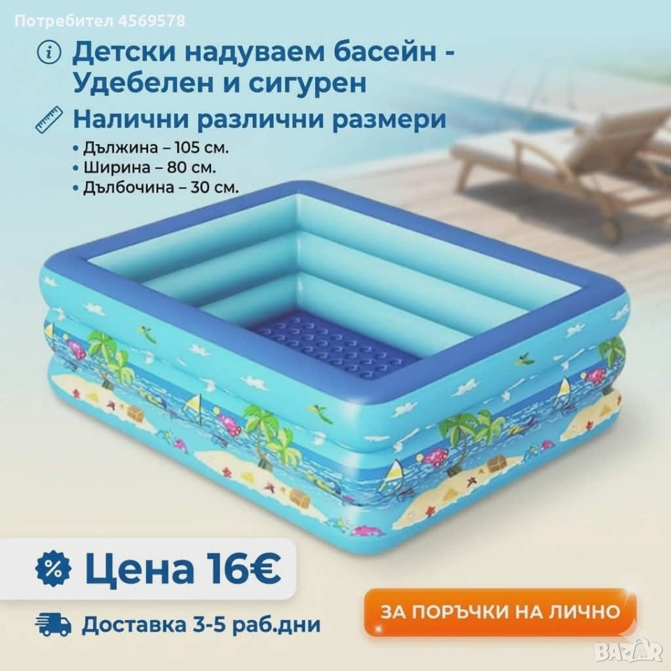 💥СУПЕР-ОФЕРТА!💥Детски надуваем басейн - удебелен и сигурен!💥 → Обява 53870244