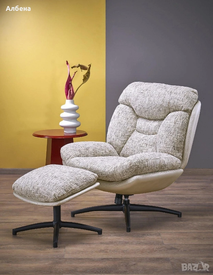 Комфортен едноместен фотьойл с поставка за крака – идеален за почивка у дома.