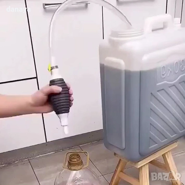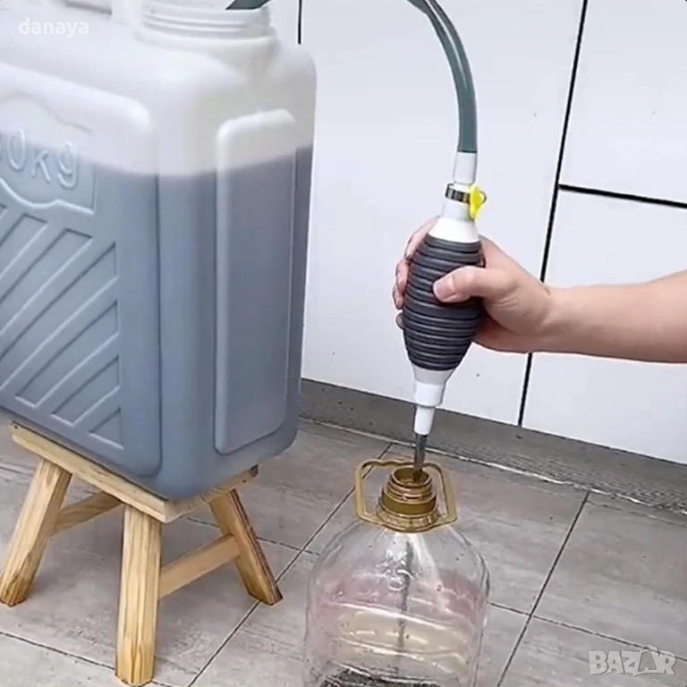 Помпа за течности. Ръчна помпа за източване на течности, с маркуч за пренос на течности – практично решение за всеки, който иска бързо, лесно и безопасно да прелее течности от един съд в друг.