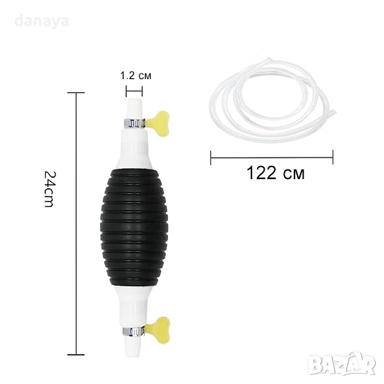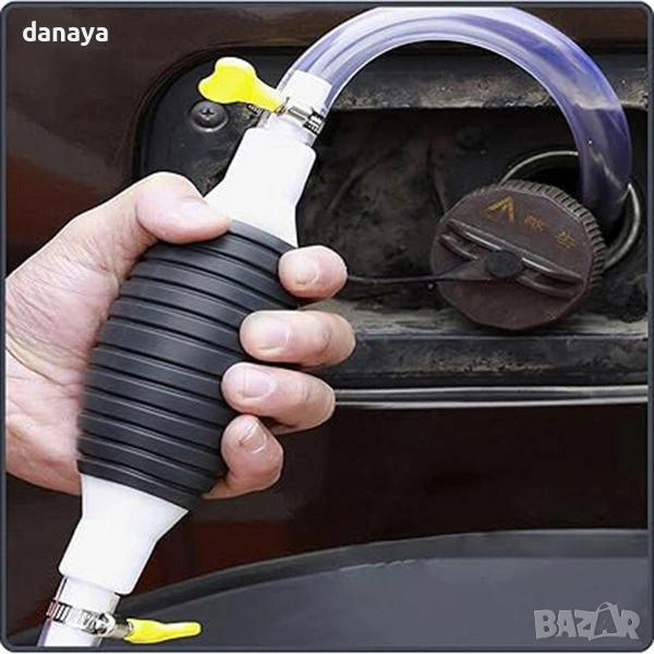 Тази ръчна помпа с маркуч е създадена за пренос на различни видове течности – гориво, масло, вода, антифриз и други. Просто натискате ръчната помпа и течността започва да се прелива автоматично чрез смукателното действие. Не са необходими електрически уреди, което я прави изключително удобна при спешни случаи, пътувания, къмпинг или аварийна смяна на течности.