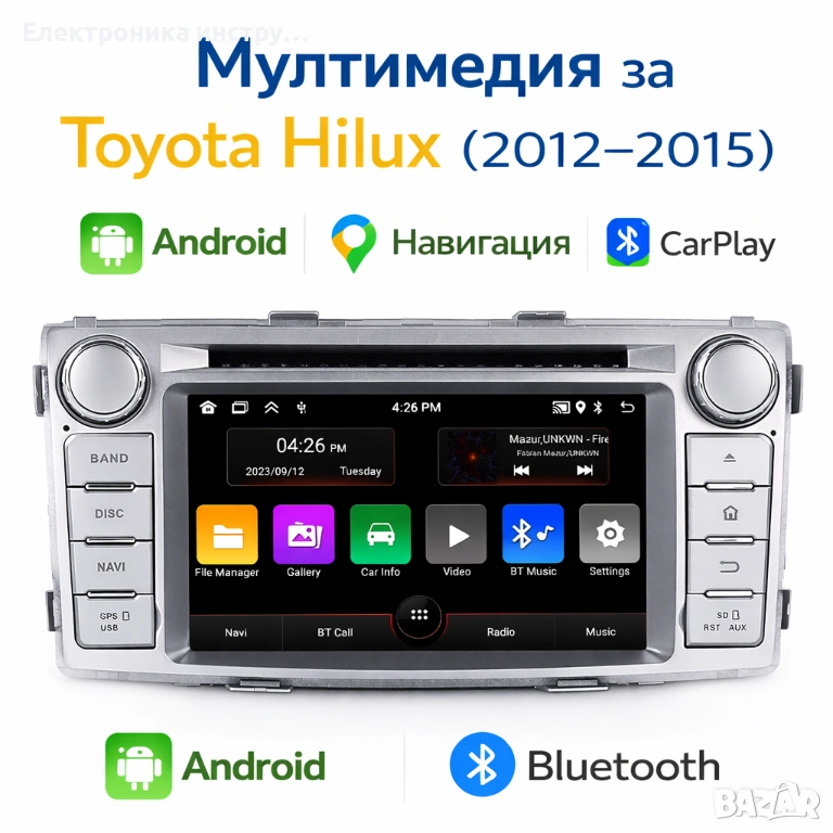 Мултимедия за Toyota Hilux (2012–2015) – Android, Навигация, Bluetooth, CarPlay
