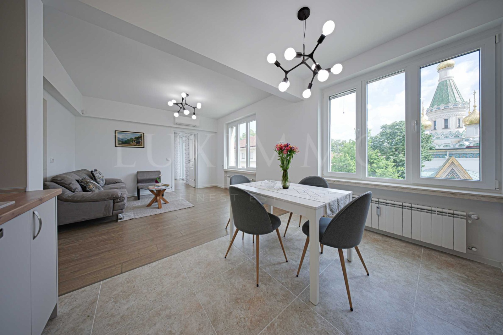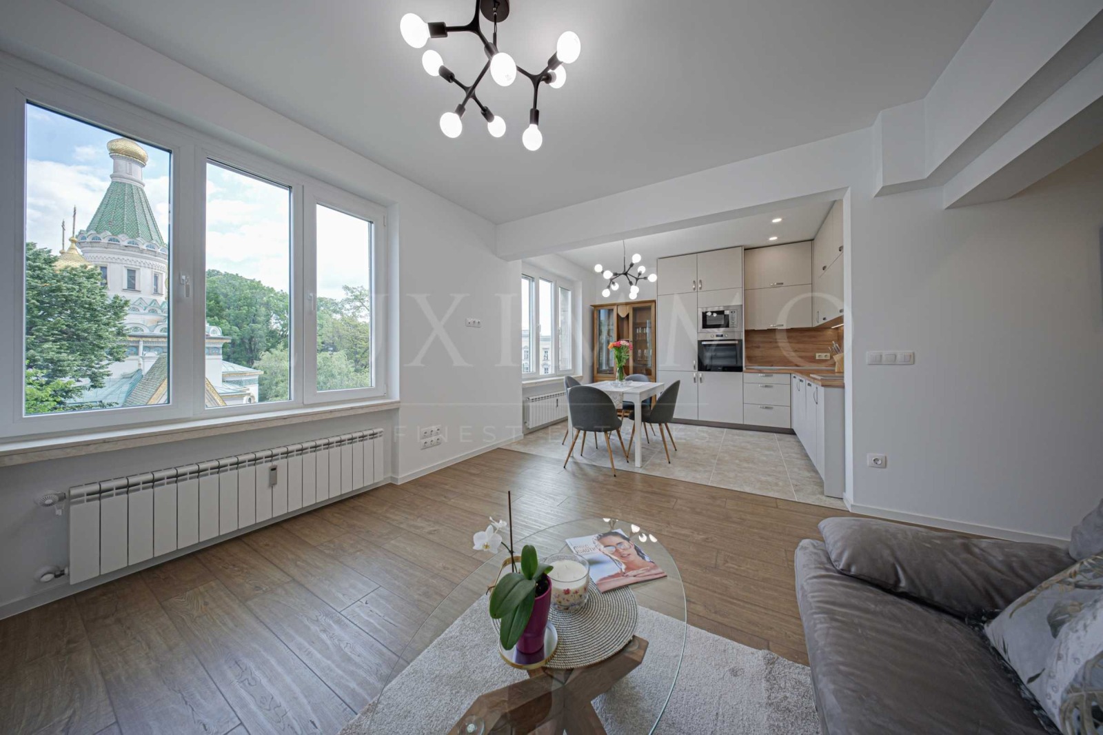 Луксозен, основно ремонтиран апартамент с панорамна гледка към Руската църква. Имотът е ситуиран в една от най-красивите части на централна София. На метри се намират емблематични за столицата сради и места като Национална художествена галерия, Зала България, Народен театър Иван Вазов , градска градина Кристал и др. Достъпът до важни точки се извършва бързо и удобно посредством бул. Цар Освободител , ул. Аксаков , ул. Г. С. Раковски .