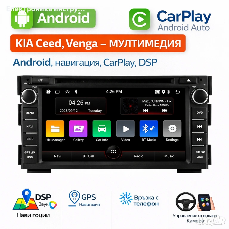 Мултимедия за KIA Ceed / Venga – Android, навигация, CarPlay, DSP