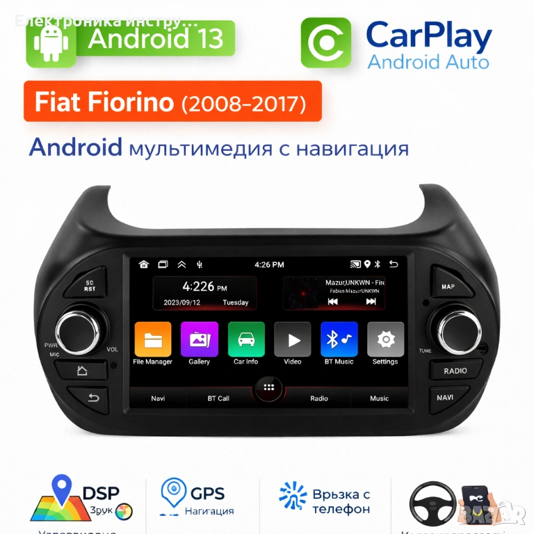 Тази Android мултимедия е директно решение за Fiat Fiorino 2008–2017, създадено за пълна съвместимост и безпроблемен монтаж. Подменя фабричното радио и превръща автомобила в модерен мултимедиен център с навигация, Bluetooth и приложения.