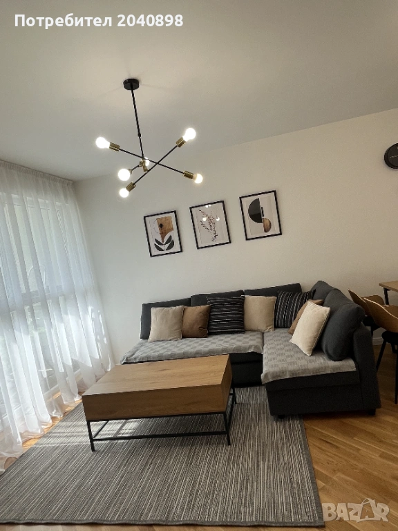 паркет. Дограмата е ПВЦ с трислоен стъклопакет. Напълно обзаведен с нови мебели