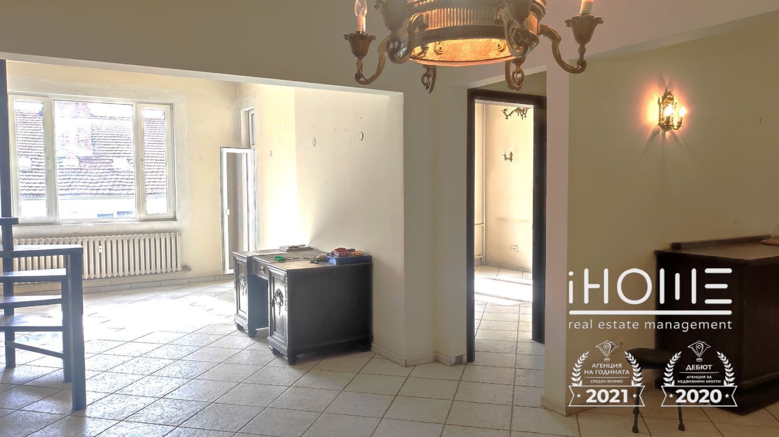 iHOME REAL ESTATE продава апартамент проникнат от духа на стара София. В сърцето на столицата, разположен до сградата на Европейската комисия, имотът предлага щедри възможности за смели архитектурни решения, които да съвместят новаторство и традиция, модерен начин на живот и нотки на носталгия по миналото. Жилището се състои от пет големи помещения, отделна кухня, голяма баня, преддверие и вестибюл, два балкона, два входа, усвоено таванско помещение обособено като кабинет със самостоятелна тераса, до него се стига с вътрешна стълба. Сградата е от 30-те години, изключително стабилно стоманобетонно строителство, високи тавани 3.80 м, нестандартно разпределение от съвременна гледна точка, което предполага реализиране на много идеи. Към имота принадлежи също мазе /зимнично помещение/ - 26 м2. Покривът и фасадата са ремонтирани преди три години. Особено ценна е възможността за монтиране на асансьор до стената на стълбището откъм вътрешния двор, чиито врати да се отварят на междинните площадки. На лице е и желанието на останалите съсобственици да се осъществи тази идея. До сградата, както и на съседни улици има възможност за ползване на платен паркинг.