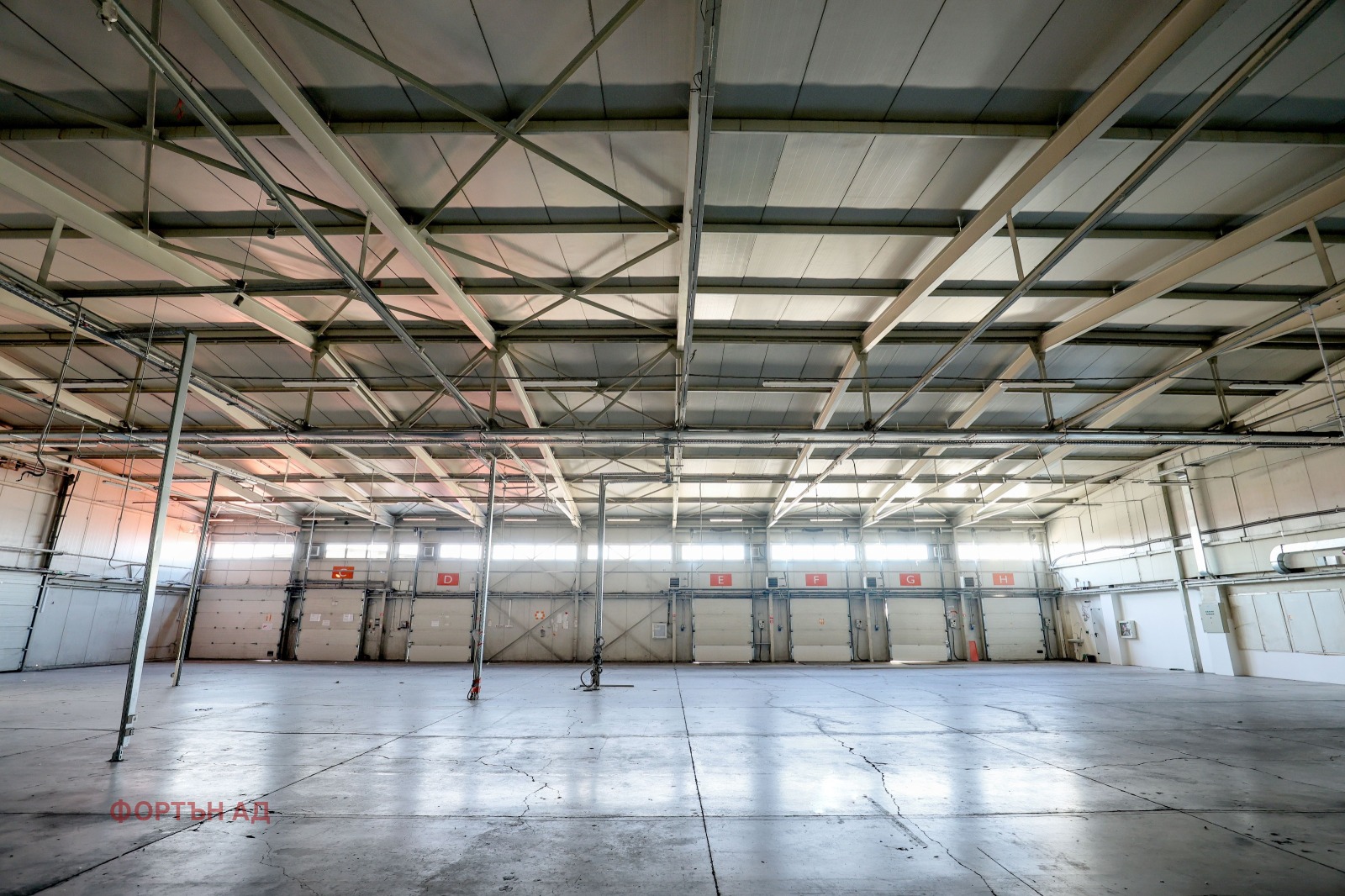 1. Склад - метална конструкция със скатен покрив, отворено пространство; колони, разположени само по външните стени, РЗП 1 025 кв.м