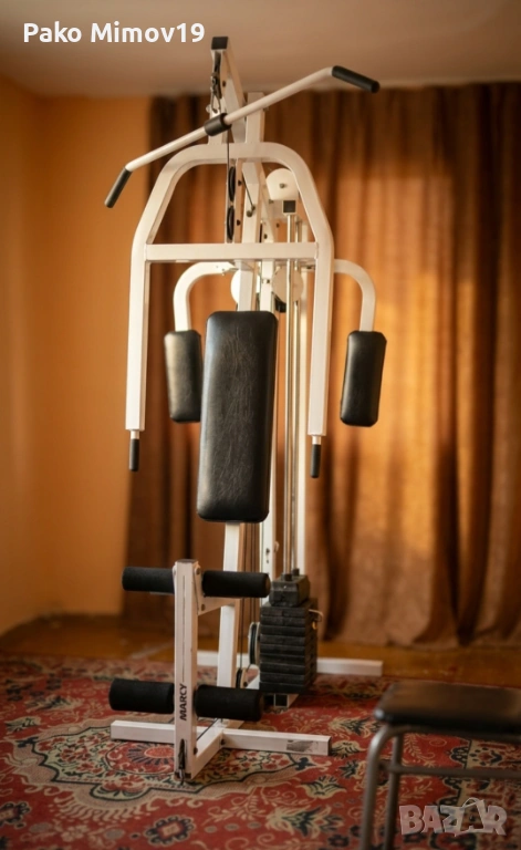 Продавам стабилна и компактна комбинирана фитнес станция тип „гладиатор“, идеална за пълноценна тренировка в домашни условия. Уредът е изключително запазен, с минимални следи от употреба, здрава конструкция и неповредени кабели и тапицерия. Този модел е доказан класически вариант за изграждане на мускулна маса и тонизиране на цялото тяло, като заменя няколко специализирани фитнес уреда.